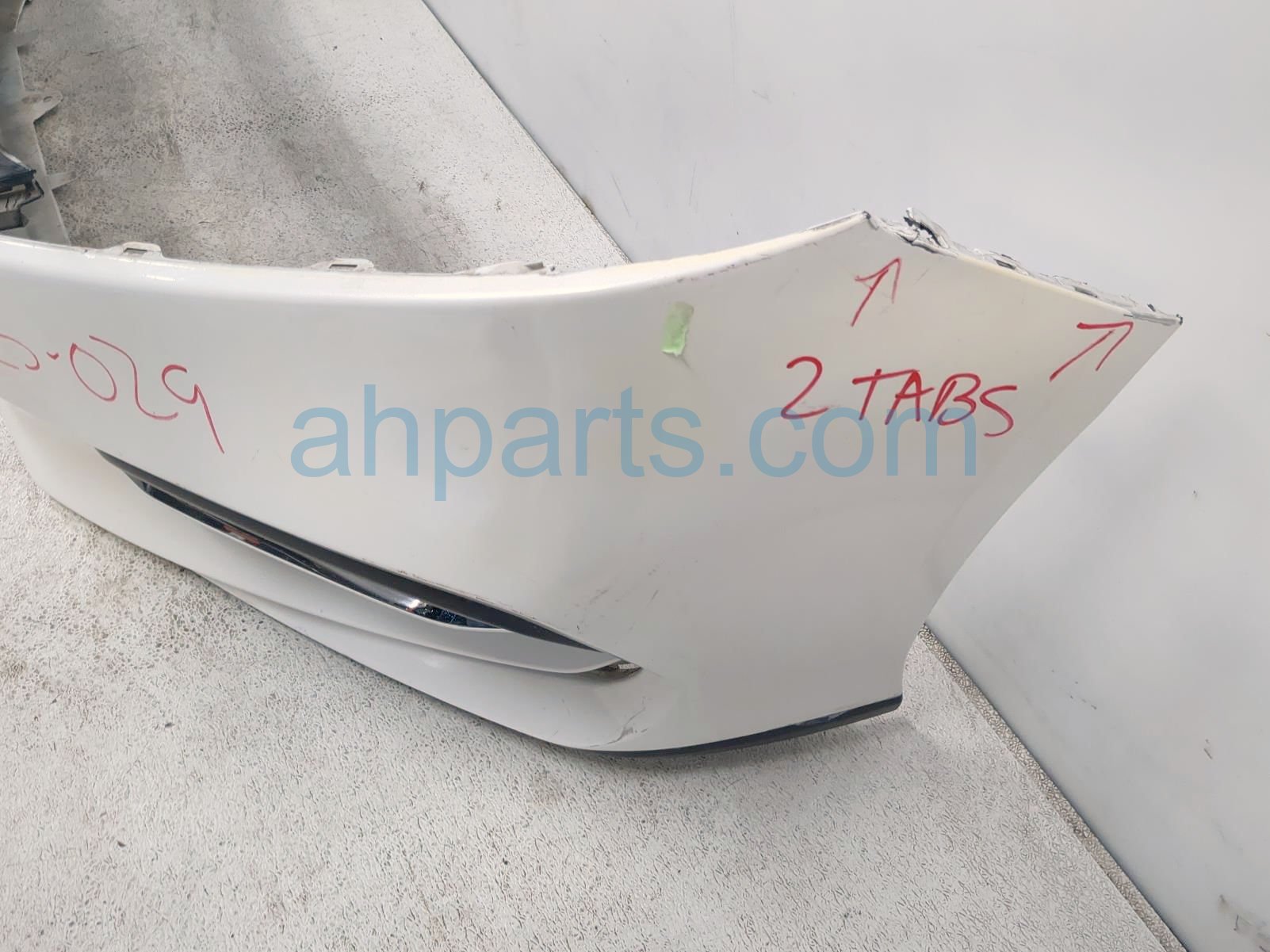 2019 Honda Accord front bumper cover - white ** is a used item with a 1 year warranty. This OEM replacement front bumper cover - white ** is genuine and has part numbers 04711-TVA-A11ZZ, 04711TVAA11ZZ, 71310-TWA-A50, 71310TWAA50, 71111-TVA-A50, and 71111TVAA50. This Honda part sells for $325. This item has the following note: 'Has center and side end lower grilles *** has some damaged mounting tabs & some scuffs/scratches and missing air guide duct also it has some glue area behind cover by tabs - grade c.'