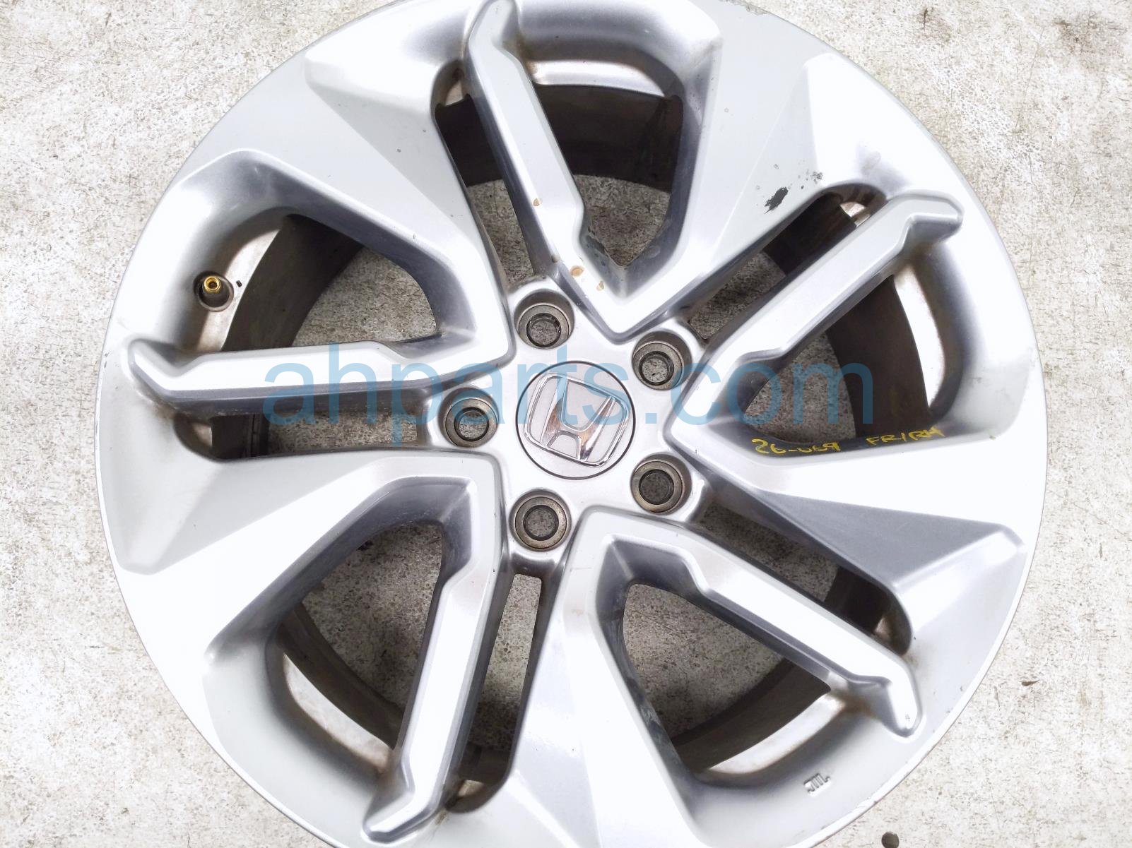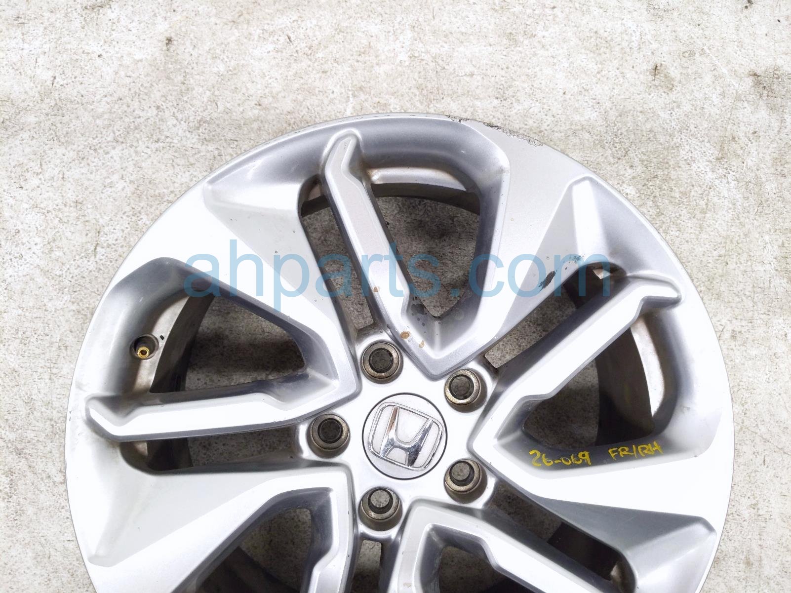 2019 Honda Accord front passenger wheel / rim - light curb is a used item with a 1 year warranty. This OEM replacement front passenger wheel / rim - light curb is genuine and has part numbers 42700-TVA-A73, and 42700TVAA73. This Honda part is for sale (please call for pricing).