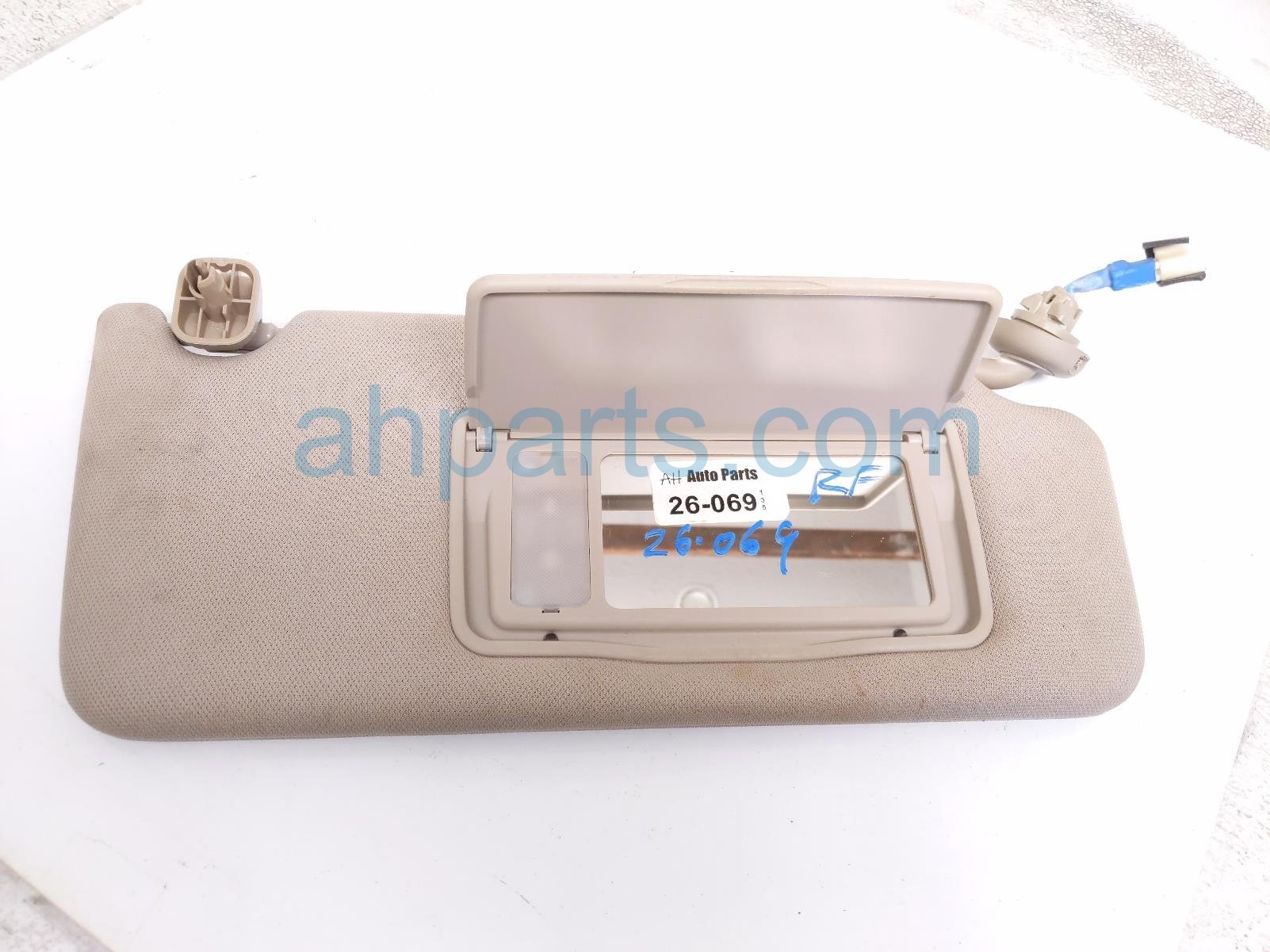 2019 Honda Accord passenger sun visor - grey is a used item with a 1 year warranty. This OEM replacement passenger sun visor - grey is genuine and has part numbers 83230-TVA-A01ZC, and 83230TVAA01ZC. This Honda part is for sale (please call for pricing). This item has the following note: 'Thisa item has some stains.'