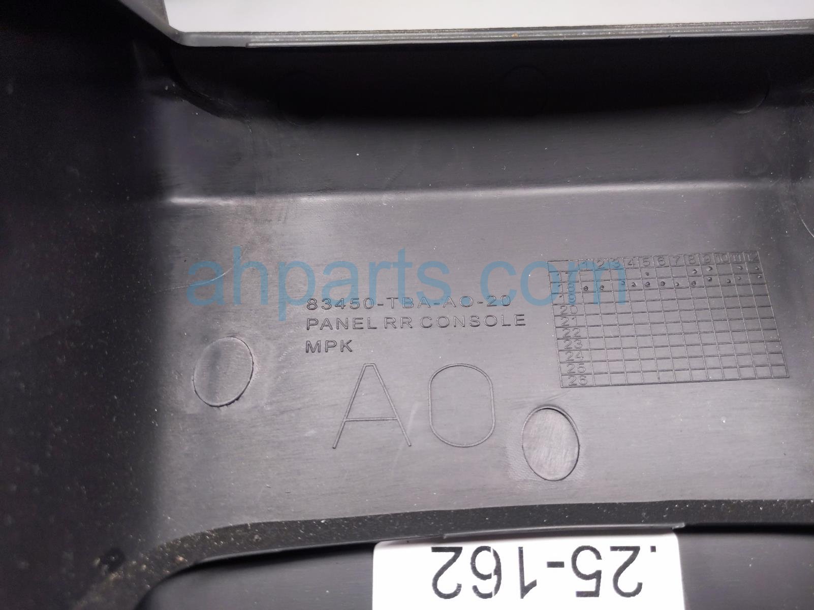 2019 Honda Civic rear console cover trim - black * is a used item with a 1 year warranty. This OEM replacement rear console cover trim - black * is genuine and has part numbers 83450-TBA-A01ZA, and 83450TBAA01ZA. This Honda part sells for $35. This item has the following note: 'Has some scuffs/scratches - grade b.'