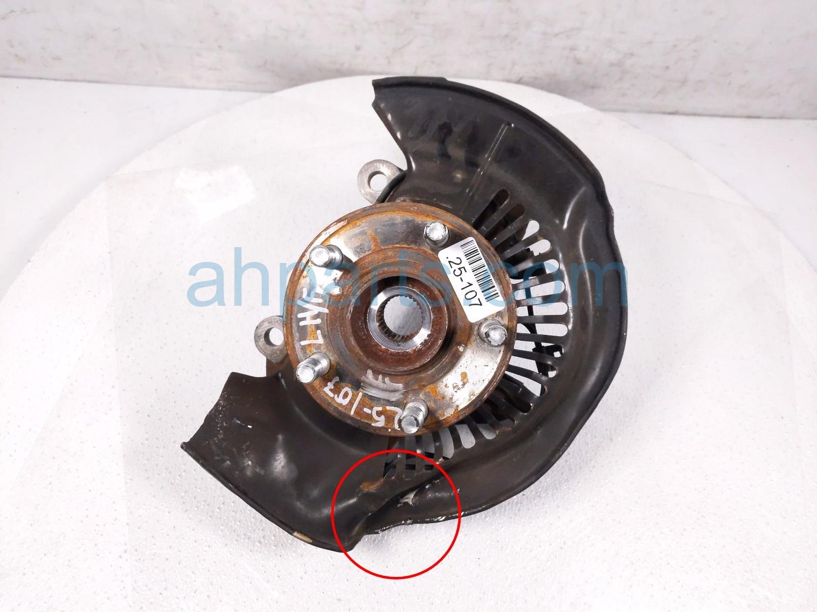 2019 Honda Odyssey front driver spindle knuckle hub * is a used item with a 1 year warranty. This OEM replacement front driver spindle knuckle hub * is genuine and has part numbers 45256-THR-A00, 45256THRA00, 44600-TG7-A00, 44600TG7A00, 51216-THR-A01, and 51216THRA01. This Honda part sells for $75. This item has the following note: 'Dented dust sheild - grade a.'