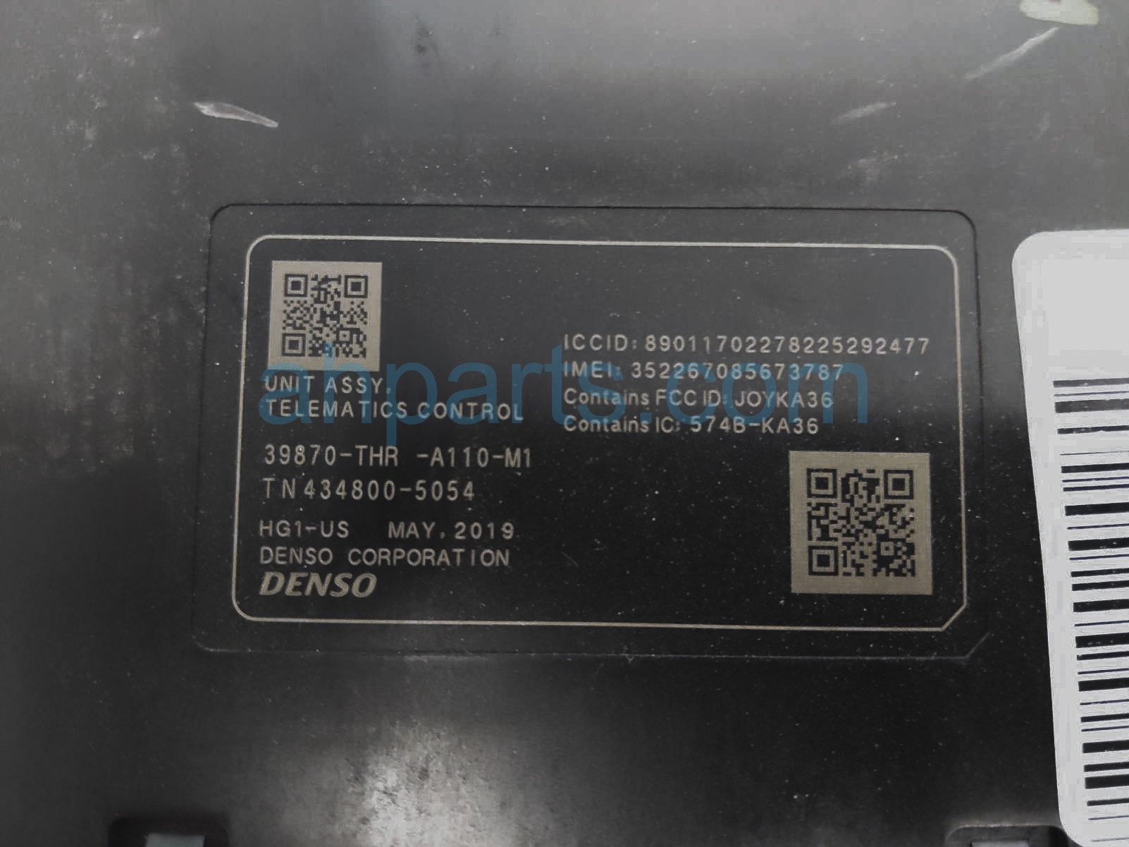 2019 Honda Odyssey telematic control unit is a used item with a 1 year warranty. This OEM replacement telematic control unit is genuine and has part numbers 39870-THR-A13, 39870THRA13, 39870-THR-A11, and 39870THRA11. This Honda part sells for $75.