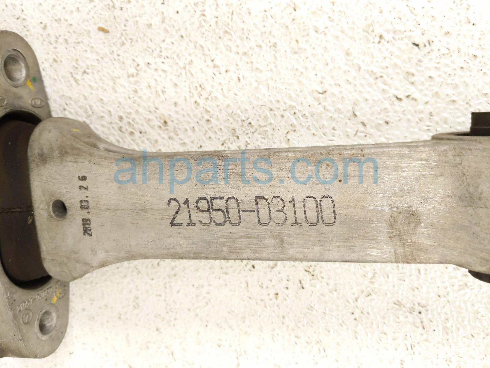 2019 Hyundai Tucson engine/motor passenger lower torque strut mount-2.4l is a used item with a 1 year warranty. This OEM replacement engine/motor passenger lower torque strut mount-2.4l is genuine and has part numbers 21950-D3100, and 21950D3100. This Hyundai part is for sale (please call for pricing).