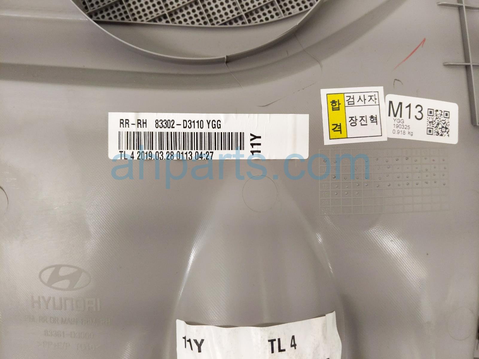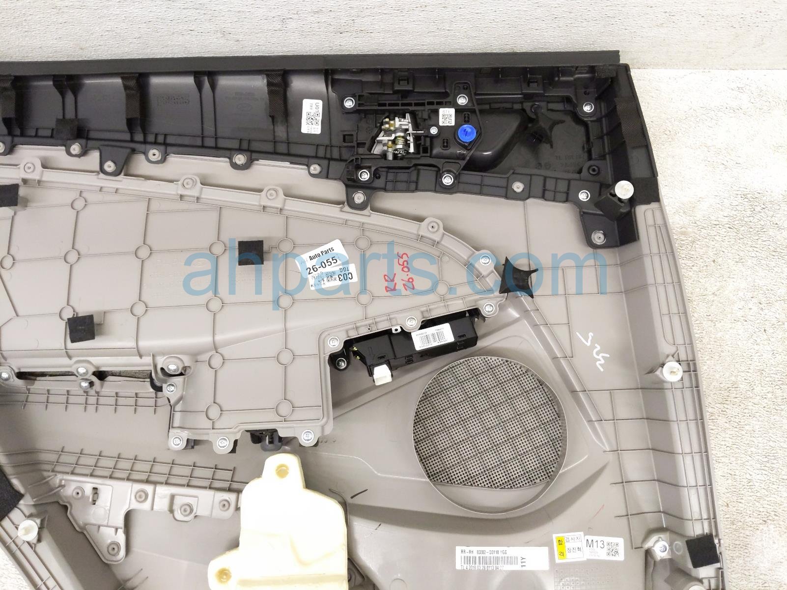 2019 Hyundai Tucson rear trim liner rear passenger interior door panel - grey is a used item with a 1 year warranty. This OEM replacement rear trim liner rear passenger interior door panel - grey is genuine and has part numbers 83308-D3050-UUE, and 83308D3050UUE. This Hyundai part is for sale (please call for pricing).