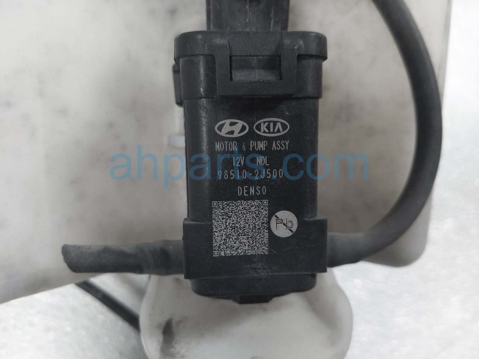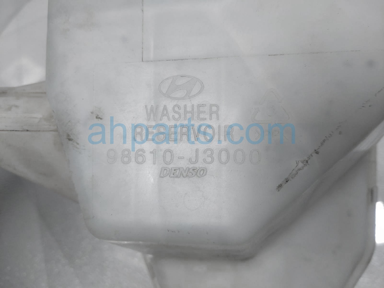 2019 Hyundai Veloster windshield washer reservoir tank is a used item with a 1 year warranty. This OEM replacement windshield washer reservoir tank is genuine and has part numbers 98510-2J500, 985102J500, 98610-J3000, and 98610J3000. This Hyundai part sells for $65.