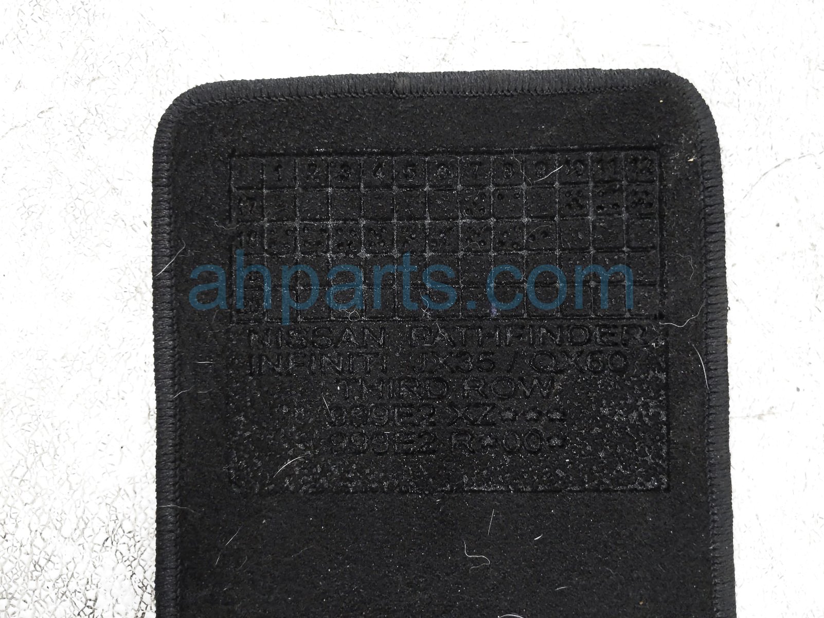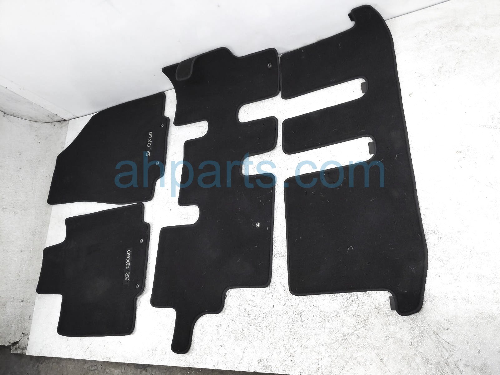 2019 Infiniti QX60 4 piece floor mats - black cloth is a used item with a 1 year warranty. This OEM replacement 4 piece floor mats - black cloth is genuine and has part numbers 999E2-R2120, and 999E2R2120. This Infiniti part sells for $125.