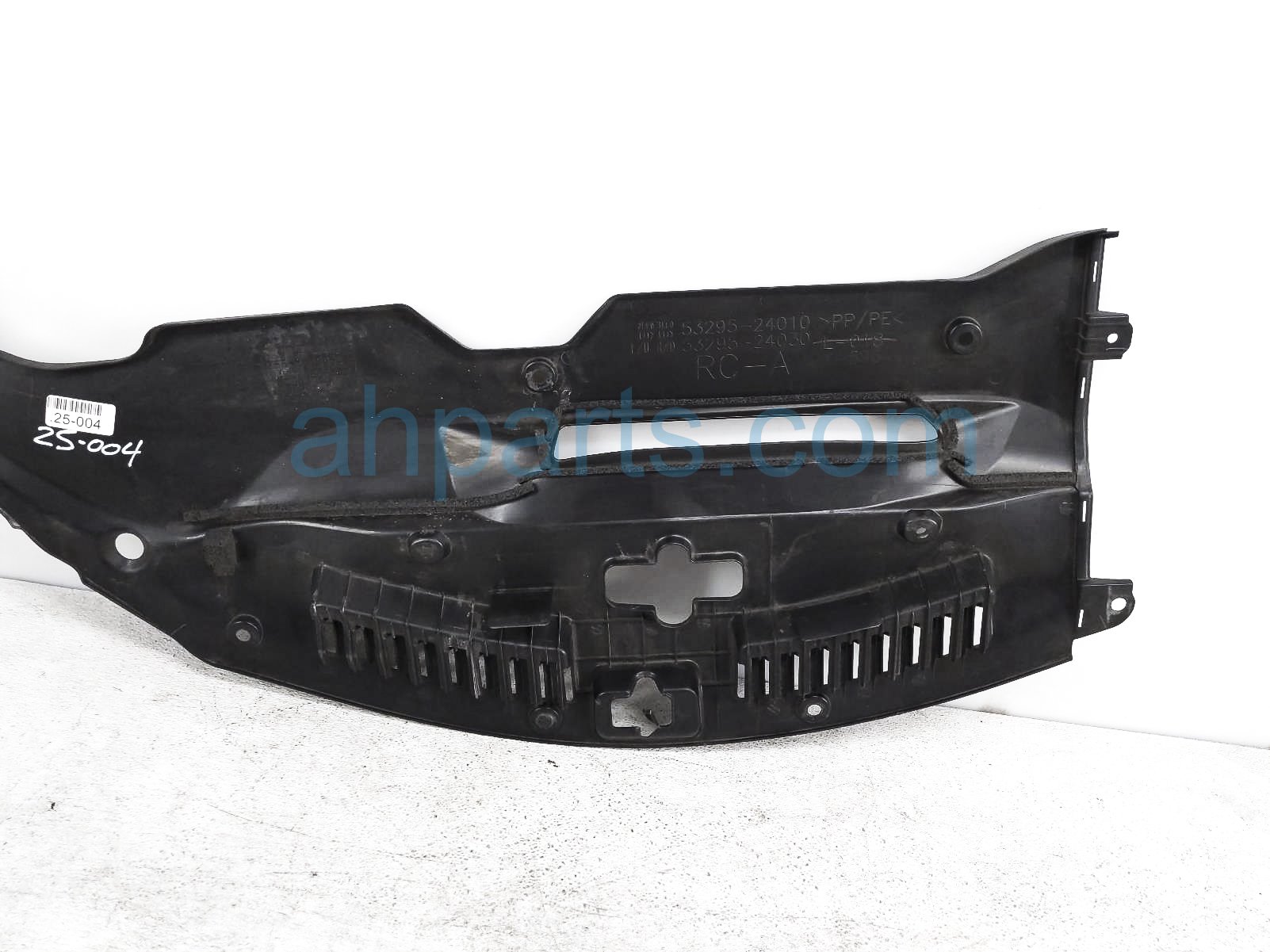 2019 Lexus RC300 upper engine grille sight shield is a used item with a 1 year warranty. This OEM replacement upper engine grille sight shield is genuine and has part numbers 53295-24030, and 5329524030. This Lexus part sells for $99. This item has the following note: 'This item has a very minor chip middle front section - grade b.'