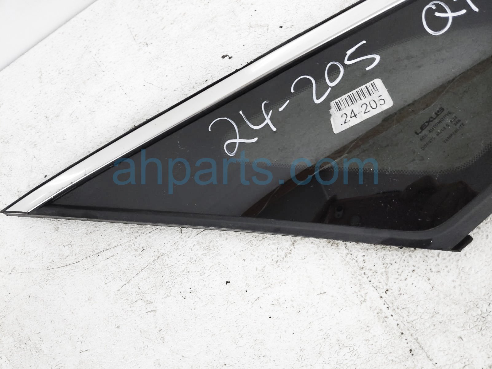 2019 Lexus RX350 driver quarter window glass is a used item with a 1 year warranty. This OEM replacement driver quarter window glass is genuine and has part numbers 62720-0E180, and 627200E180. This Lexus part sells for $149.