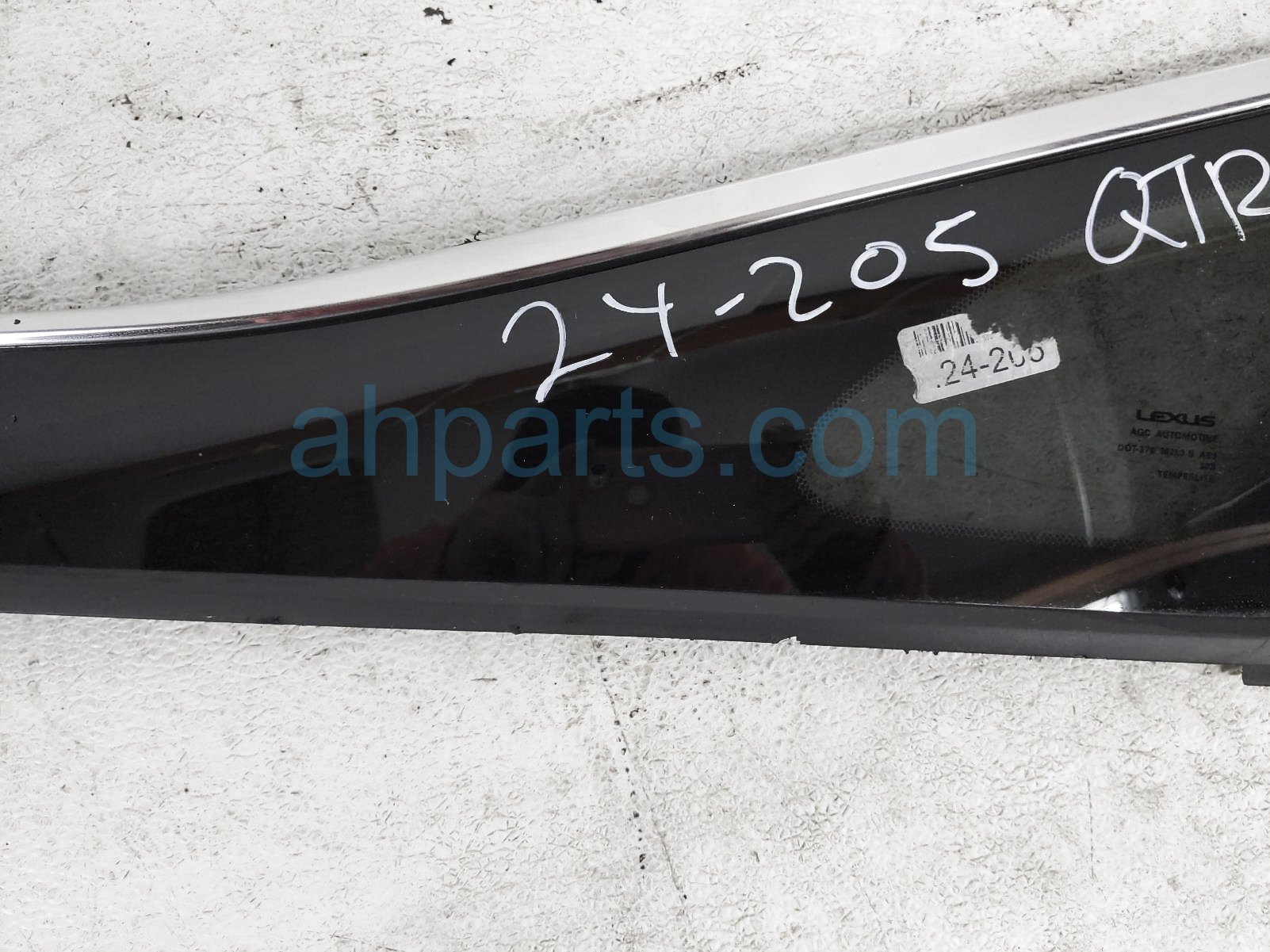 2019 Lexus RX350 passenger quarter window glass is a used item with a 1 year warranty. This OEM replacement passenger quarter window glass is genuine and has part numbers 62710-0E170, and 627100E170. This Lexus part sells for $149.