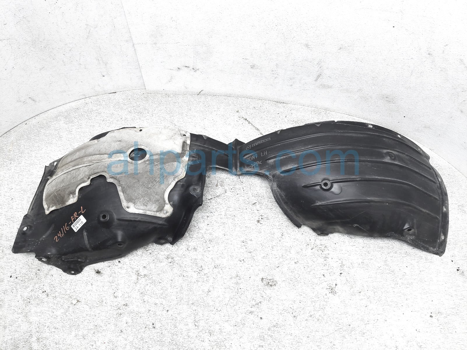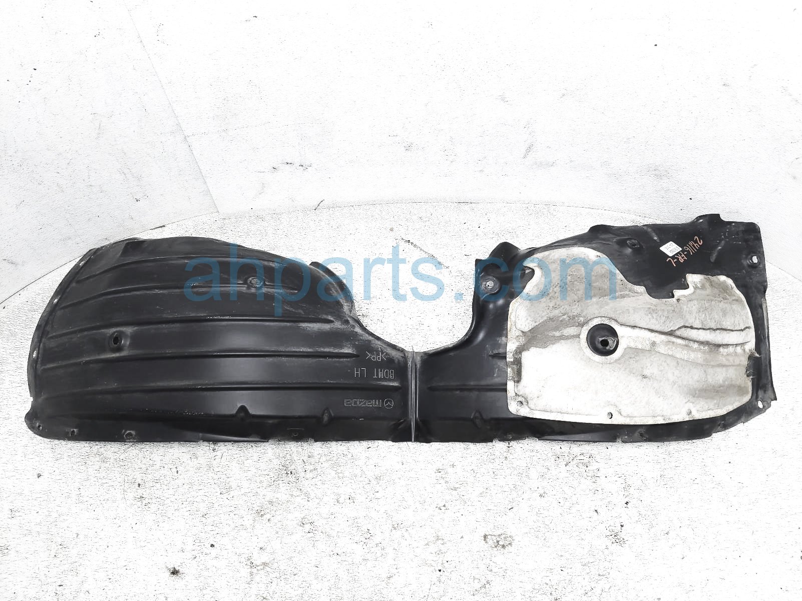 2019 Mazda 3 front driver inner fender liner - htbk is a used item with a 1 year warranty. This OEM replacement front driver inner fender liner - htbk is genuine and has part numbers BDMT-56-140, BDMT56140, BDEN-56-140, and BDEN56140. This Mazda part sells for $50. This item has the following note: 'This item has 2 ripped tabs - grade b.'