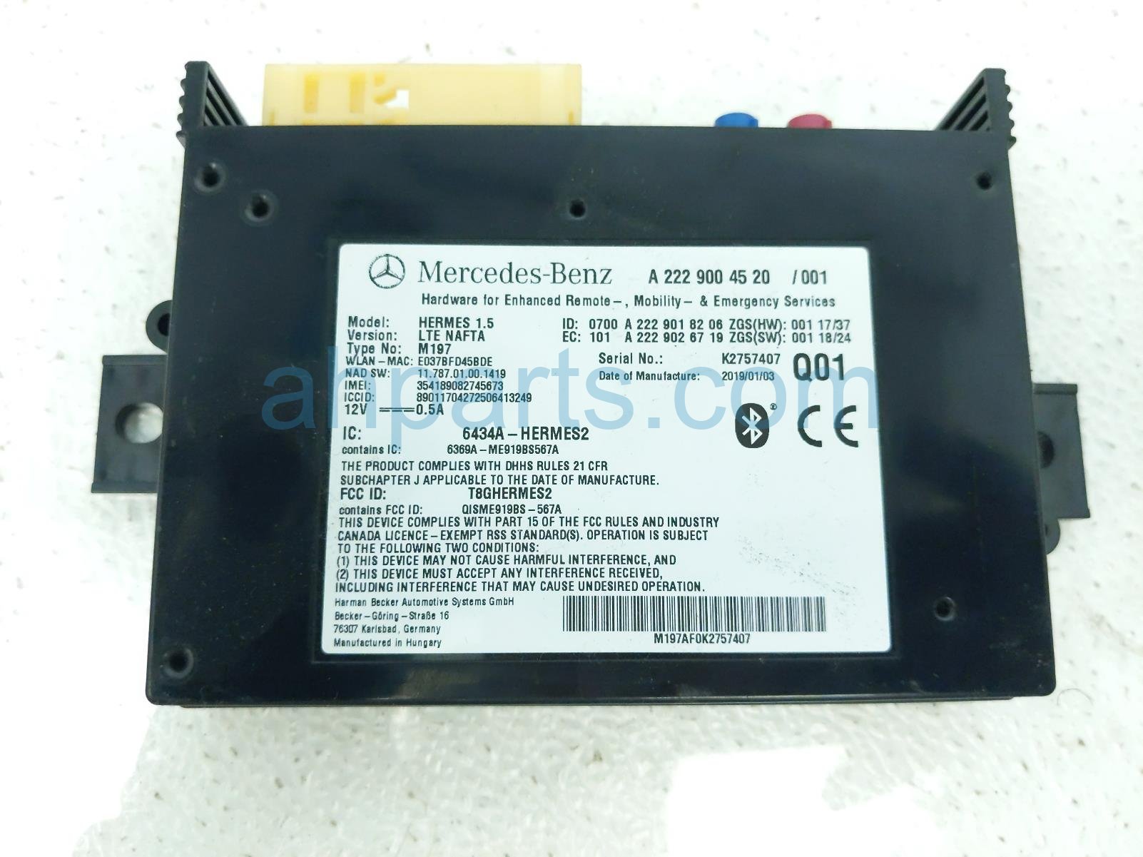 2019 Mercedes C300 telematics transceiver module is a used item with a 1 year warranty. This OEM replacement telematics transceiver module is genuine and has part numbers 222-900-45-20, and 2229004520. This Mercedes part sells for $79.