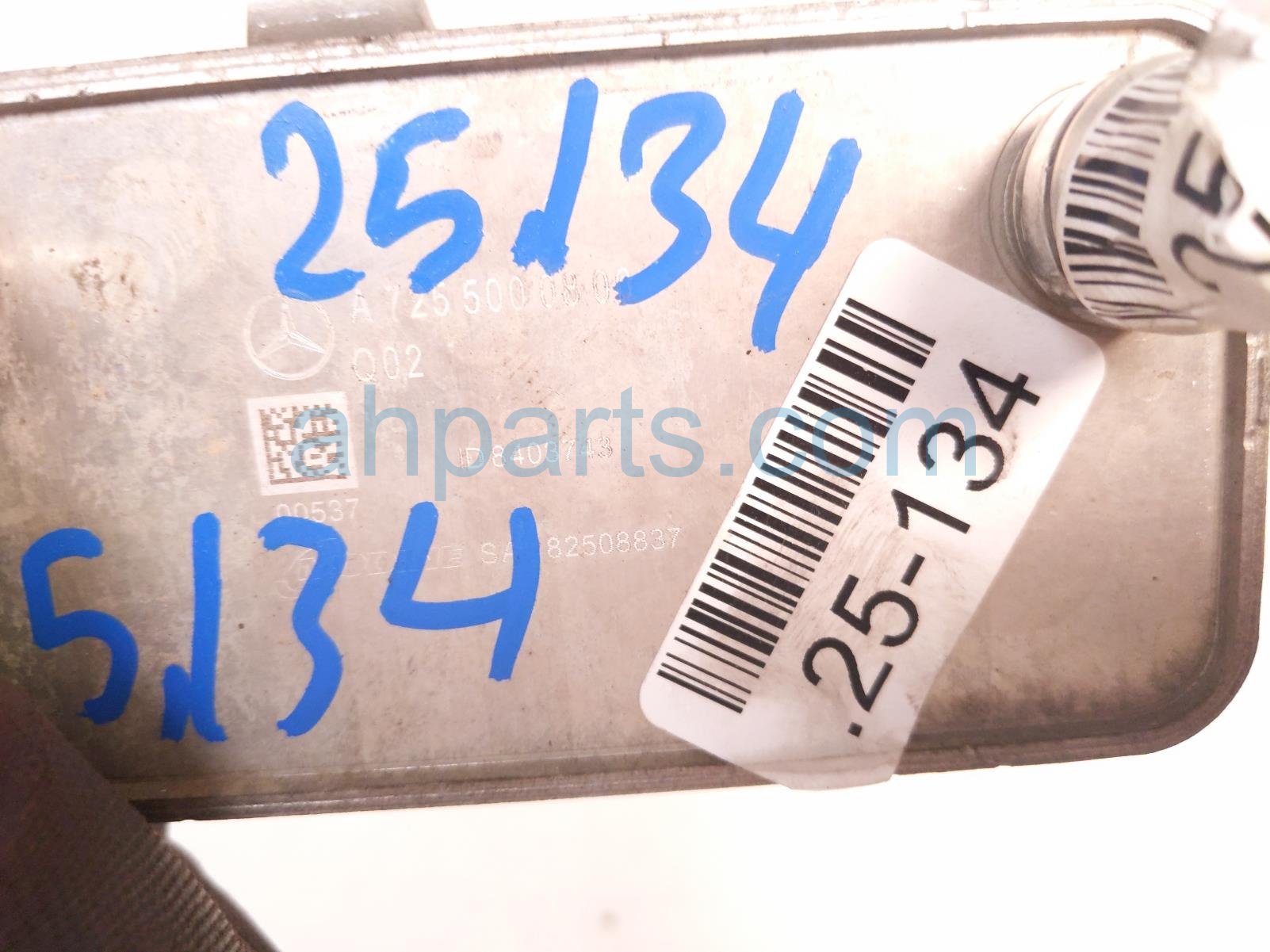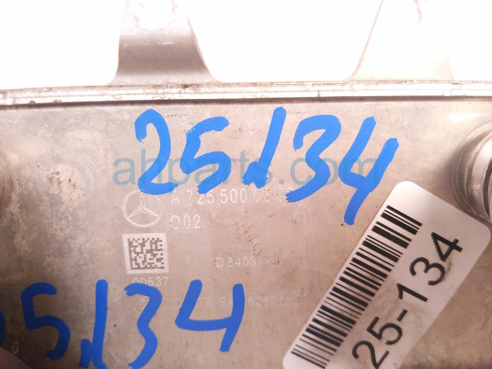 2019 Mercedes C300 transmission oil cooler - 2.0l is a used item with a 1 year warranty. This OEM replacement transmission oil cooler - 2.0l is genuine and has part numbers 725-500-08-00, and 7255000800. This Mercedes part sells for $99.