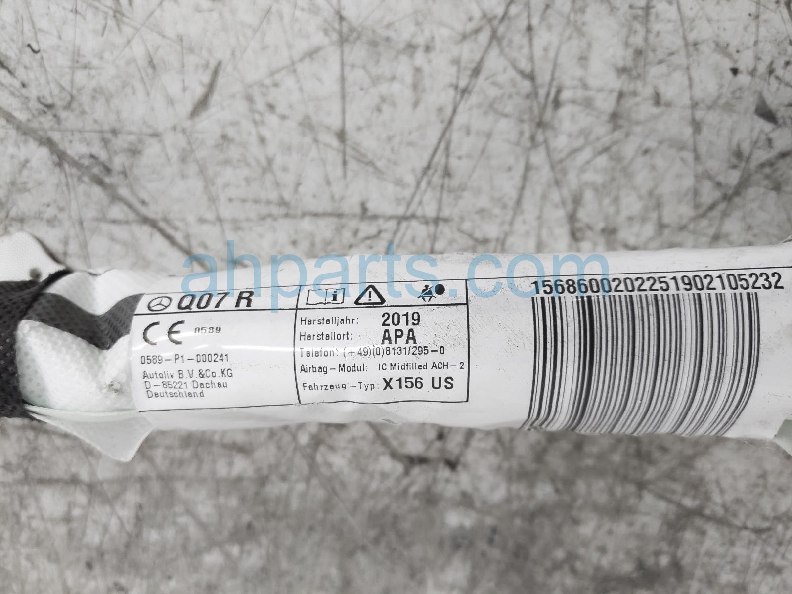 2019 Mercedes GLA250 passenger roof curtain airbag is a used item with a 1 year warranty. This OEM replacement passenger roof curtain airbag is genuine and has part numbers 156-860-02-02, and 1568600202. This Mercedes part sells for $125.
