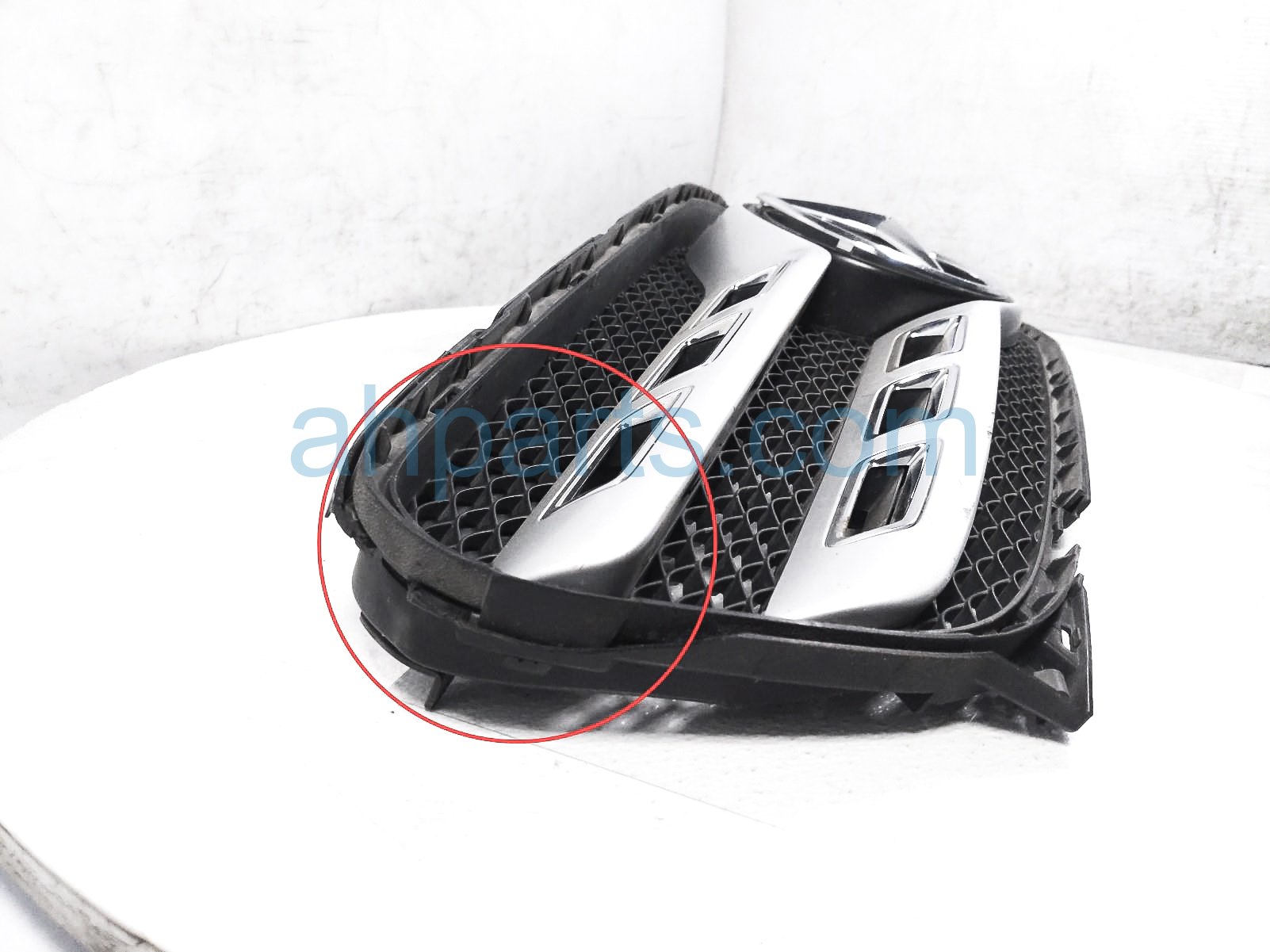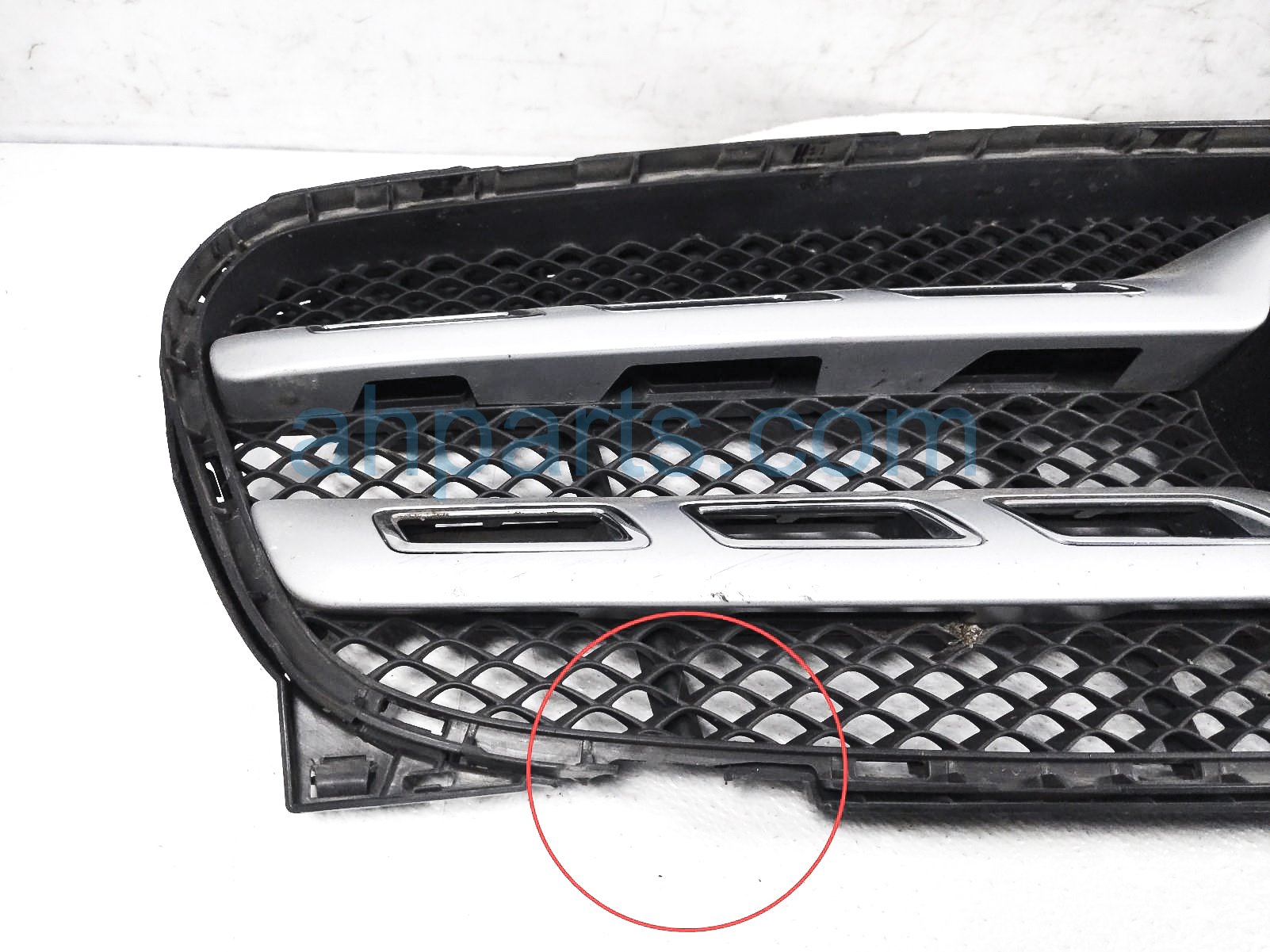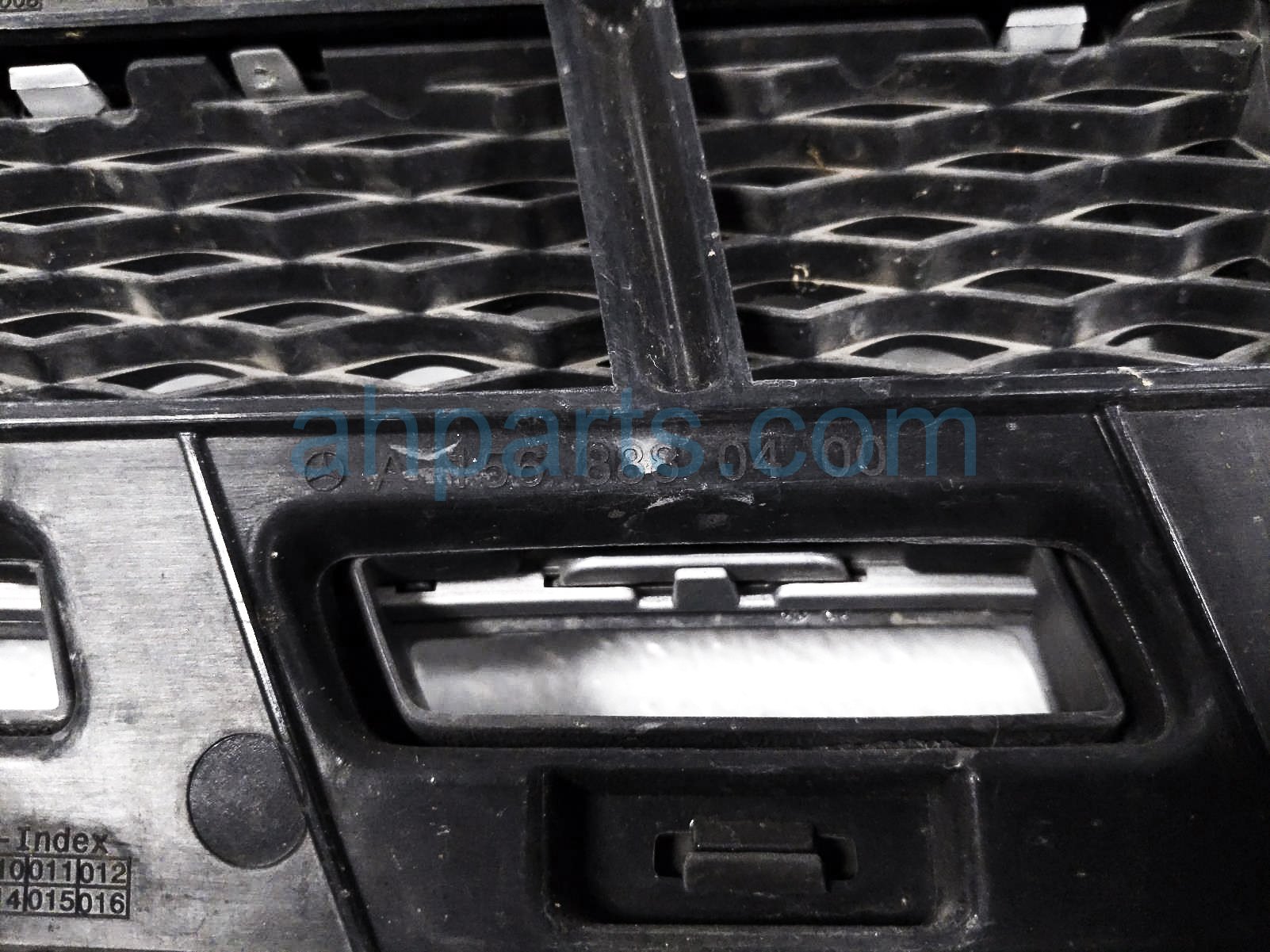 2019 Mercedes GLA250 upper grille - silver - cracked/scuf is a used item with a 1 year warranty. This OEM replacement upper grille - silver - cracked/scuf is genuine and has part numbers 156-888-04-00, 1568880400, 156-880-91-01, 1568809101, 156-888-05-00, 1568880500, 164-888-04-11, 1648880411, 156-888-06-00-9982, 15688806009982, 156-888-24-00-9982, and 15688824009982. This Mercedes part sells for $249. This item has the following note: 'Has a cracked areas & scuffs/scratches on silver/chrome areas - grade c.'