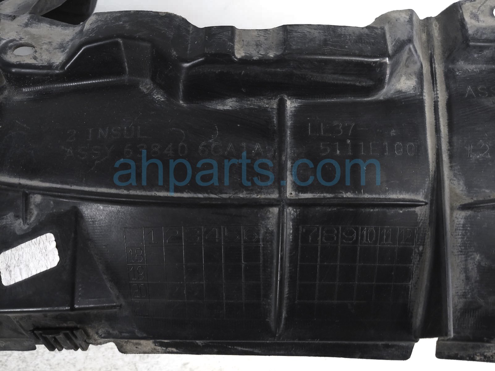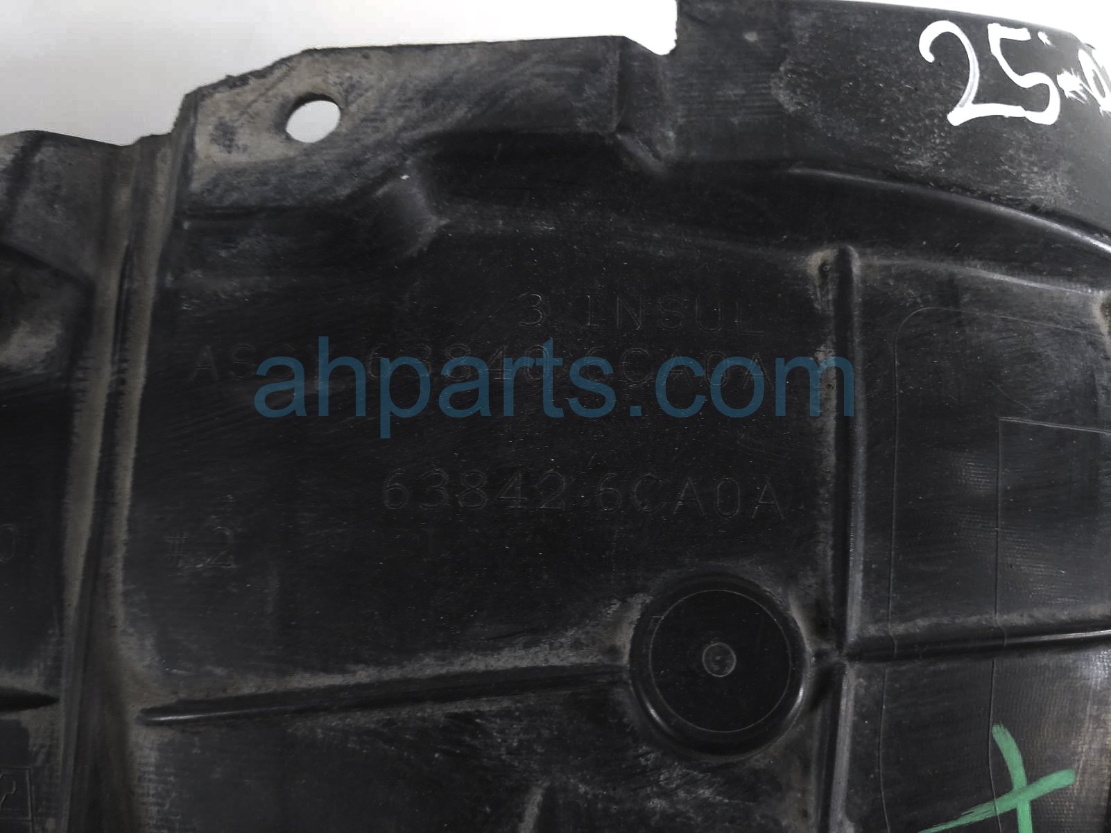 2019 Nissan Altima front passenger inner fender liner is a used item with a 1 year warranty. This OEM replacement front passenger inner fender liner is genuine and has part numbers 63840-6CA1B, and 638406CA1B. This Nissan part sells for $35. This item has the following note: 'This item has a chunk missing from the middle section - grade c.'