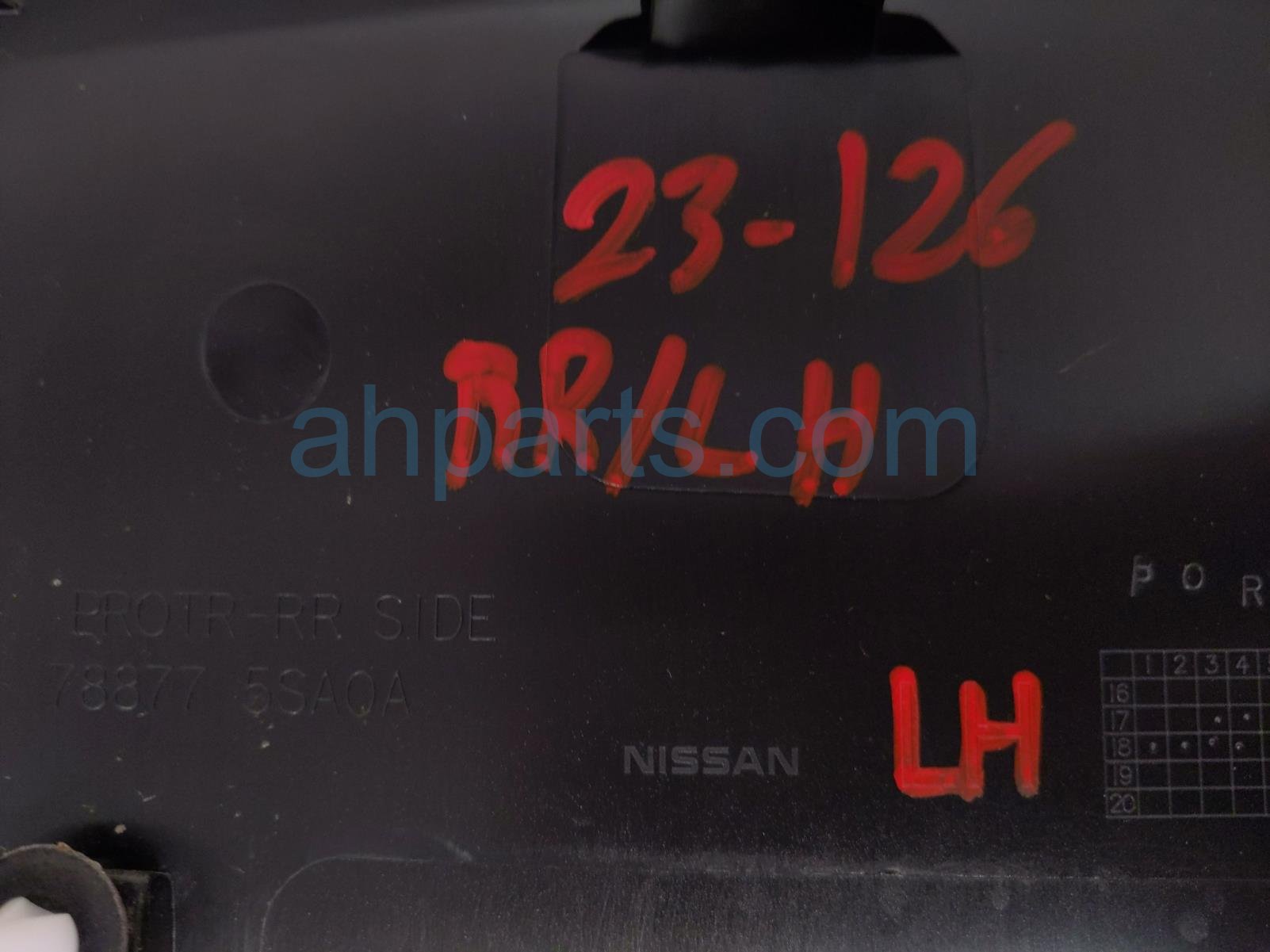 2019 Nissan Leaf driver qtr outer trim garnish - black is a used item with a 1 year warranty. This OEM replacement driver qtr outer trim garnish - black is genuine and has part numbers 78877-5SA0A, and 788775SA0A. This Nissan part sells for $49.