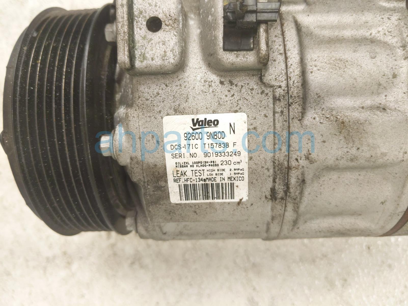 2019 Nissan Pathfinder air + clutch ac pump / compressor is a used item with a 1 year warranty. This OEM replacement air + clutch ac pump / compressor is genuine and has part numbers 92600-9NB0D, 926009NB0D, 92600 9NB0D, DCS-171C, DCS171C, and T15783B. This Nissan part sells for $65.