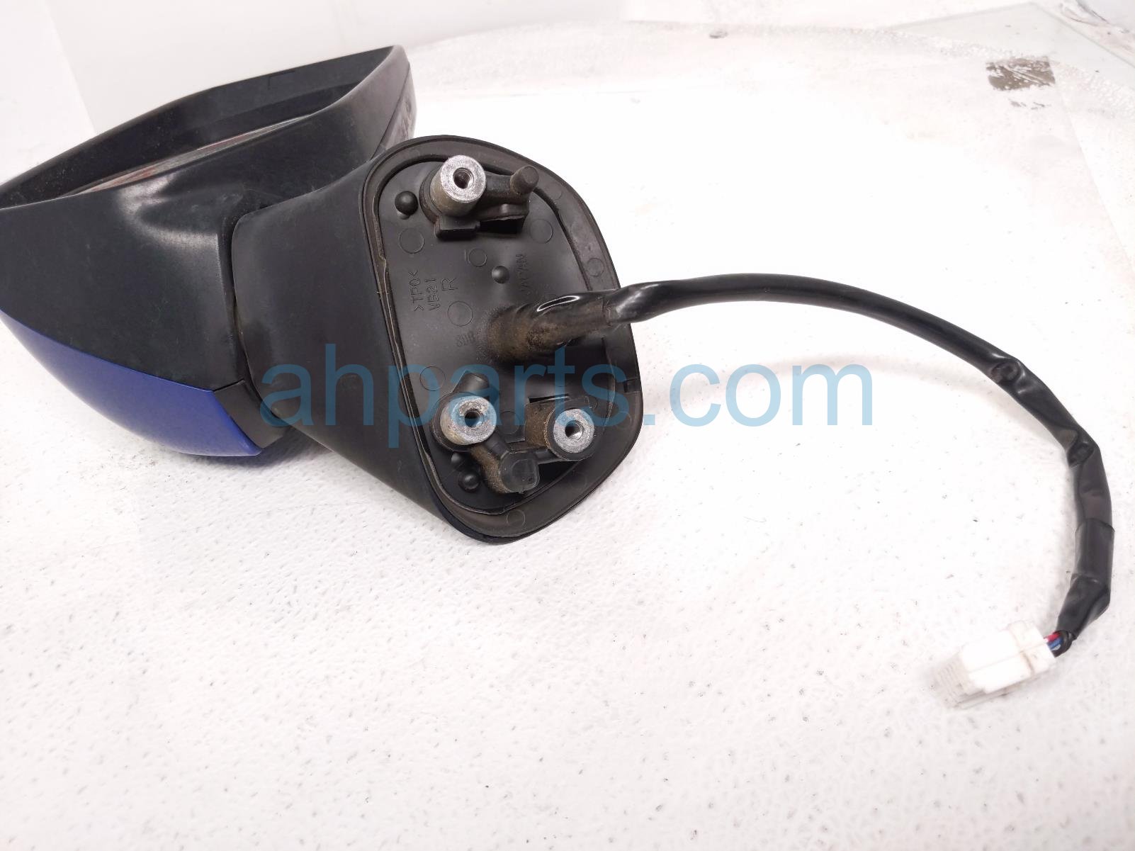 2019 Subaru WRX rear passenger side view mirror - blue * is a used item with a 1 year warranty. This OEM replacement rear passenger side view mirror - blue * is genuine and has part numbers 91036VA062, 91039VA120, 91054VA020E4, and 91054VA201. This Subaru part sells for $99. This item has the following note: 'Has minor scuffs/scratches - grade a.'