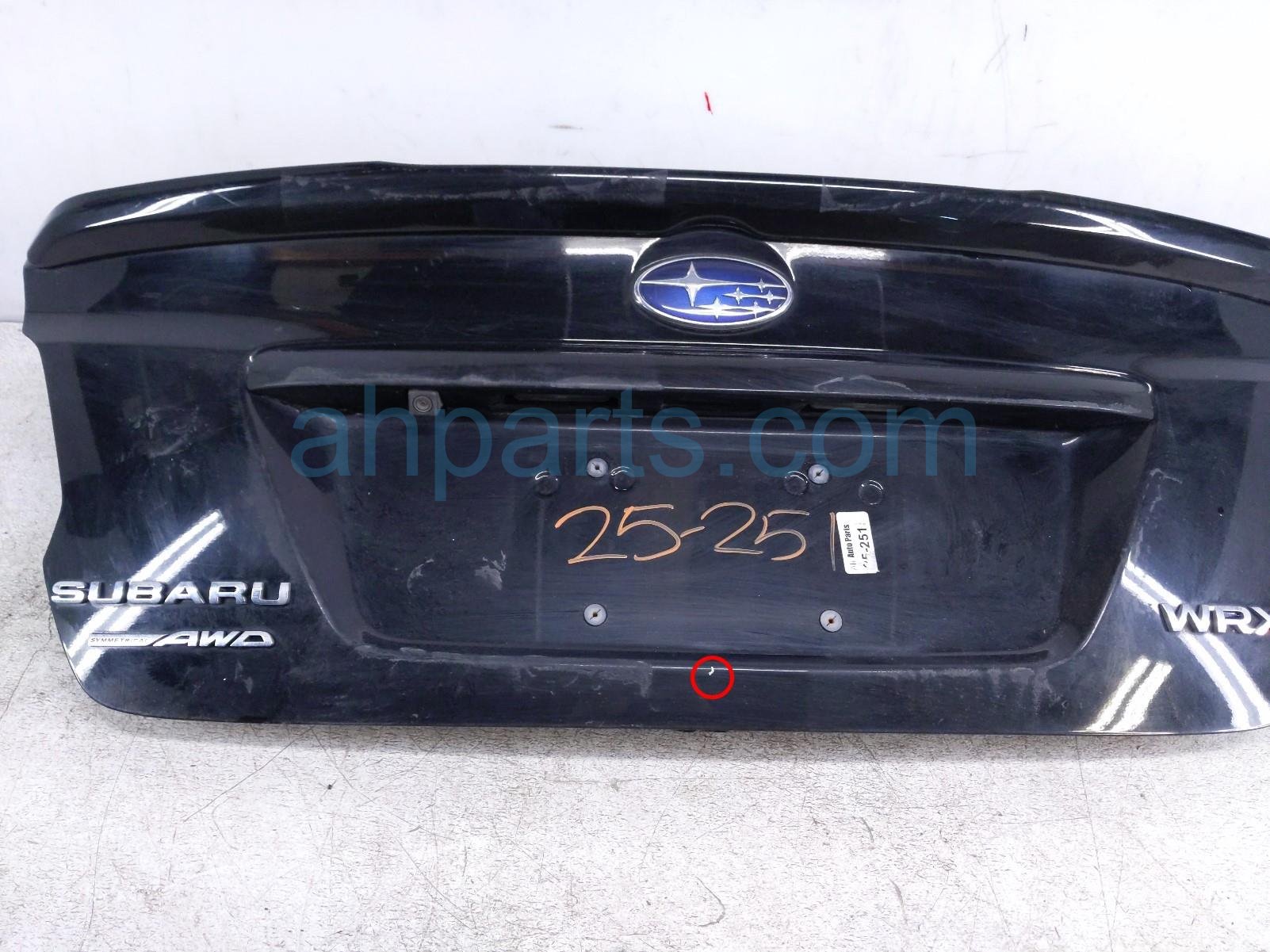 2019 Subaru WRX trunk / decklid - black is a used item with a 1 year warranty. This OEM replacement trunk / decklid - black is genuine and has part numbers 57509VA0509P. This Subaru part sells for $349. This item has the following note: 'This item has minor scratches and scuffs along with tape residue.'