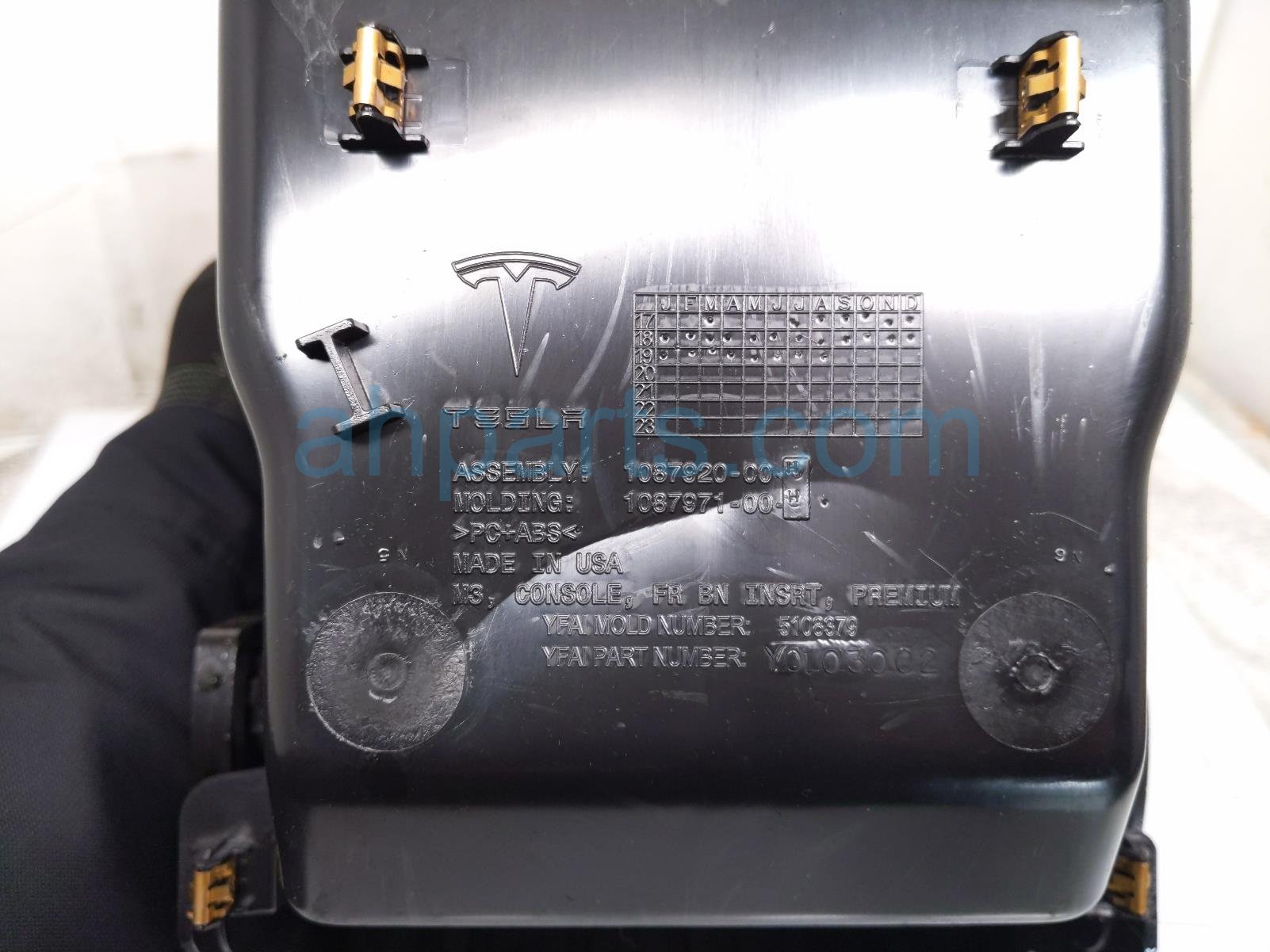 2019 Tesla Tesla 3 center console frnt bin insert - blk is a used item with a 1 year warranty. This OEM replacement center console frnt bin insert - blk is genuine and has part numbers 1087920-00-H, and 108792000H. This Tesla part is for sale (please call for pricing).