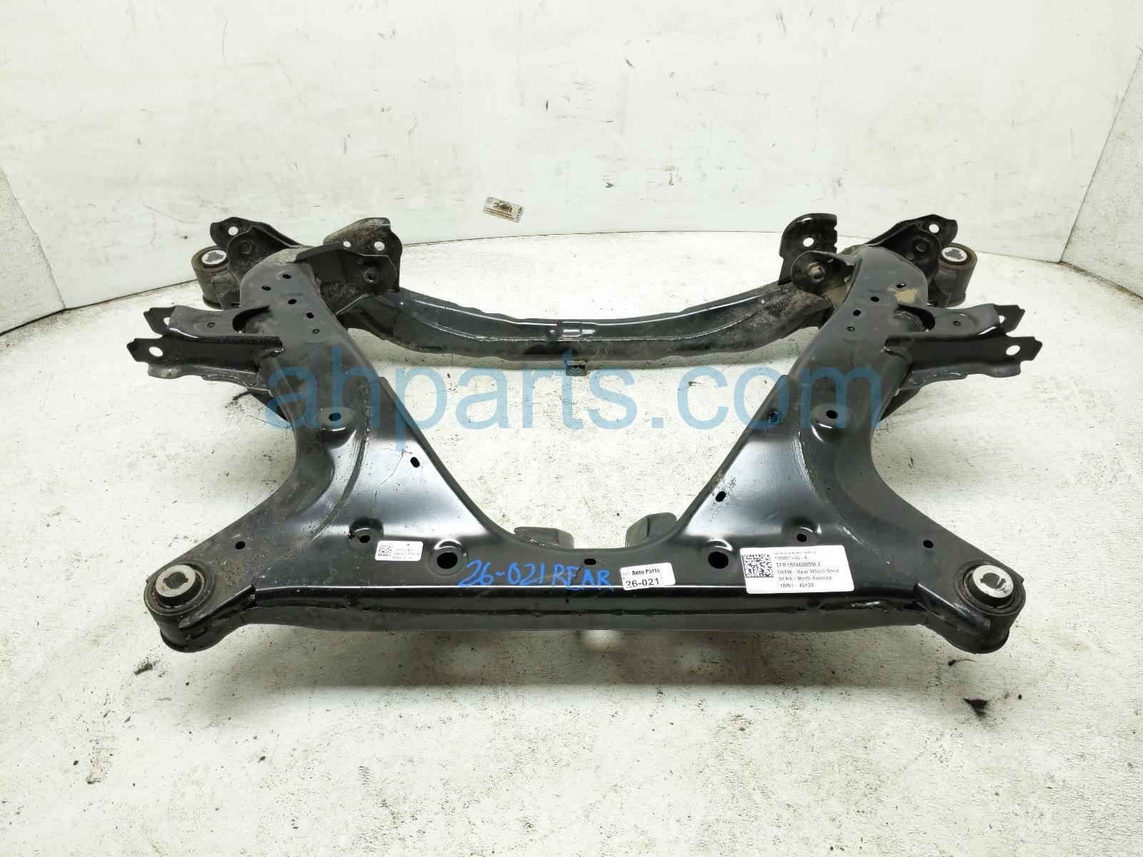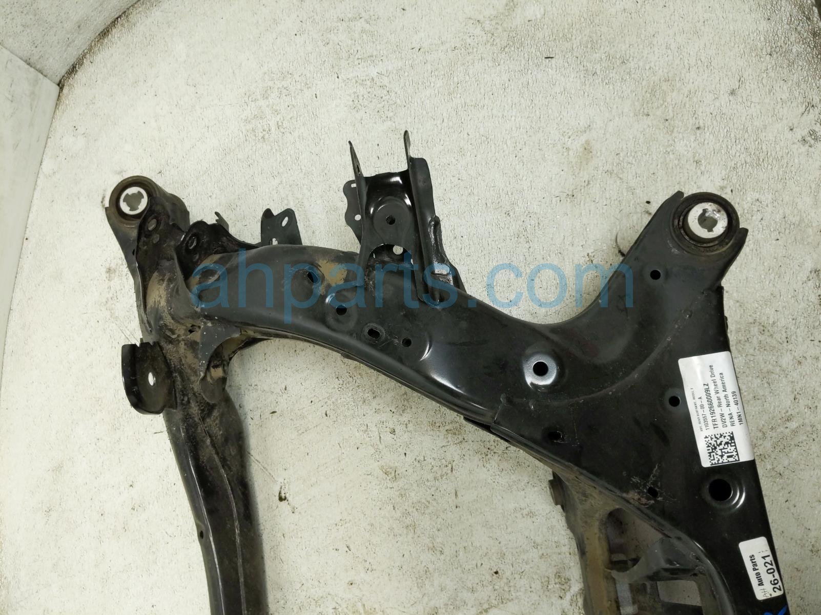 2019 Tesla Model 3 crossmember rear sub frame / cradle is a used item with a 1 year warranty. This OEM replacement crossmember rear sub frame / cradle is genuine and has part numbers 1044575-00-C, and 104457500C. This Tesla part is for sale (please call for pricing).