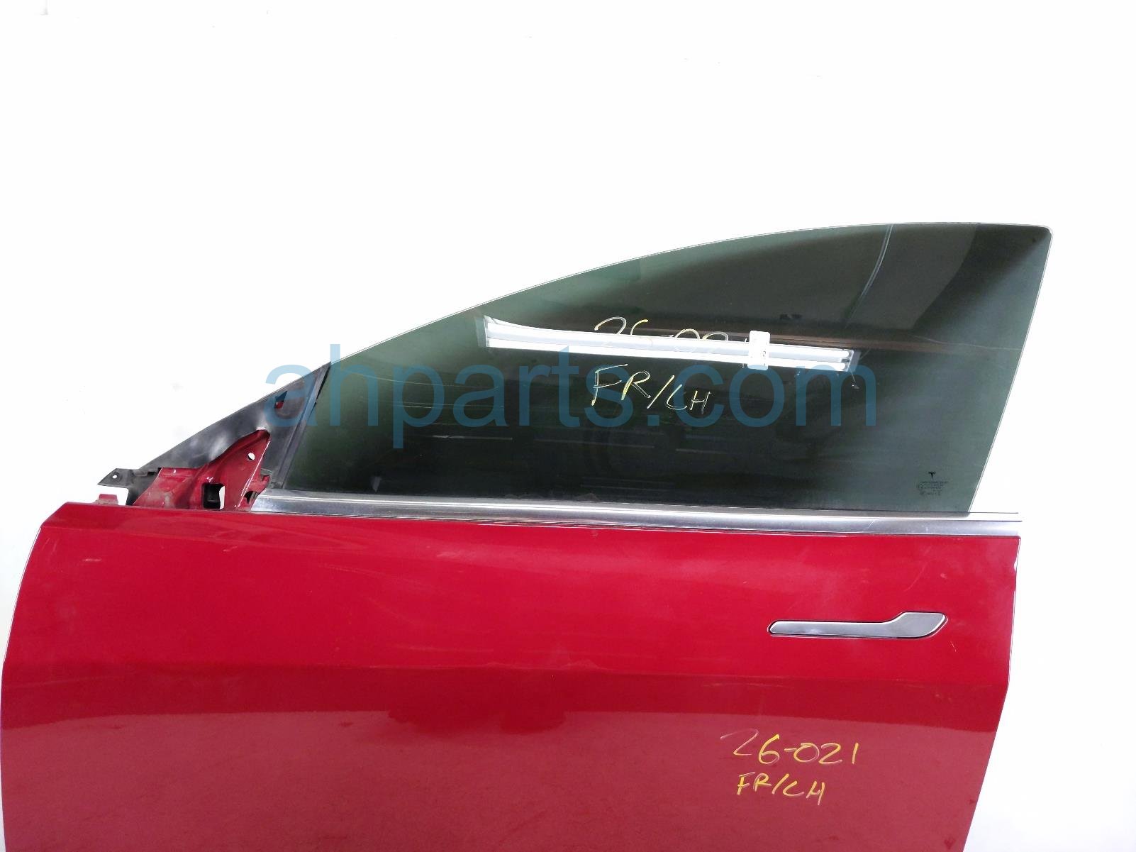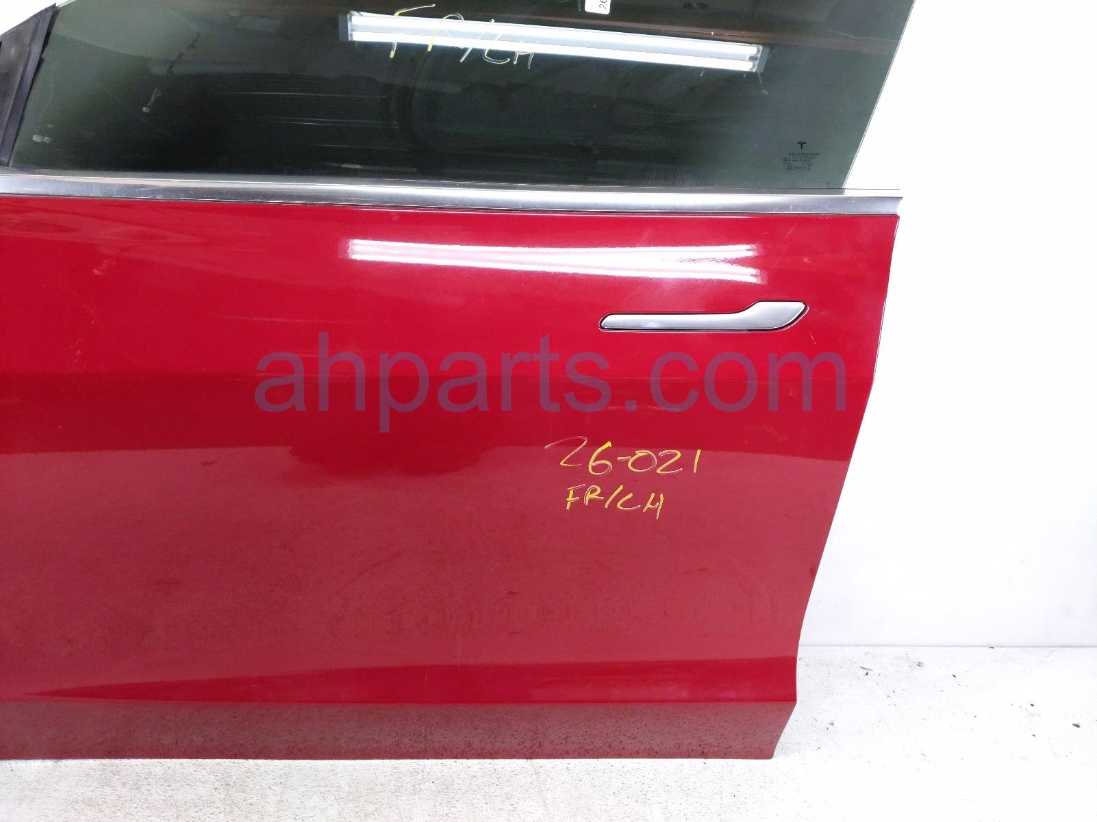 2019 Tesla Tesla 3 front driver door - red - no mirror/trim is a used item with a 1 year warranty. This OEM replacement front driver door - red - no mirror/trim is genuine and has part numbers 1081421-E0-C, 1081421E0C, 1077900-99-A, 107790099A, 1067957-00-F, and 106795700F. This Tesla part is for sale (please call for pricing).