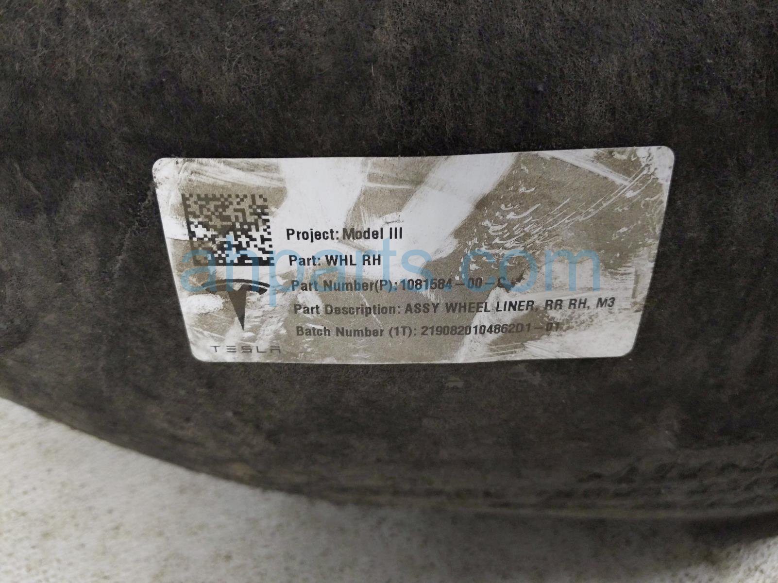 2019 Tesla Tesla 3 rear passenger inner fender liner is a used item with a 1 year warranty. This OEM replacement rear passenger inner fender liner is genuine and has part numbers 1081584-00-C, and 108158400C. This Tesla part is for sale (please call for pricing).