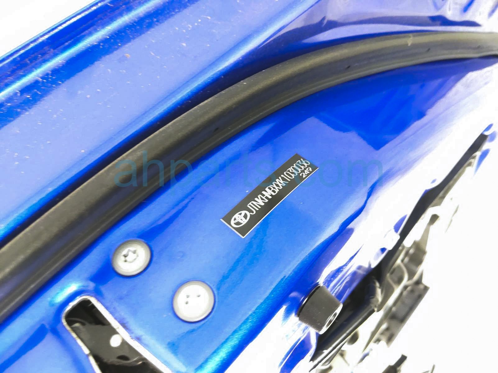2019 Toyota C-HR front passenger door - blue - no mirror/trim is a used item with a 1 year warranty. This OEM replacement front passenger door - blue - no mirror/trim is genuine and has part numbers 67001-10670, and 6700110670. This Toyota part sells for $545.