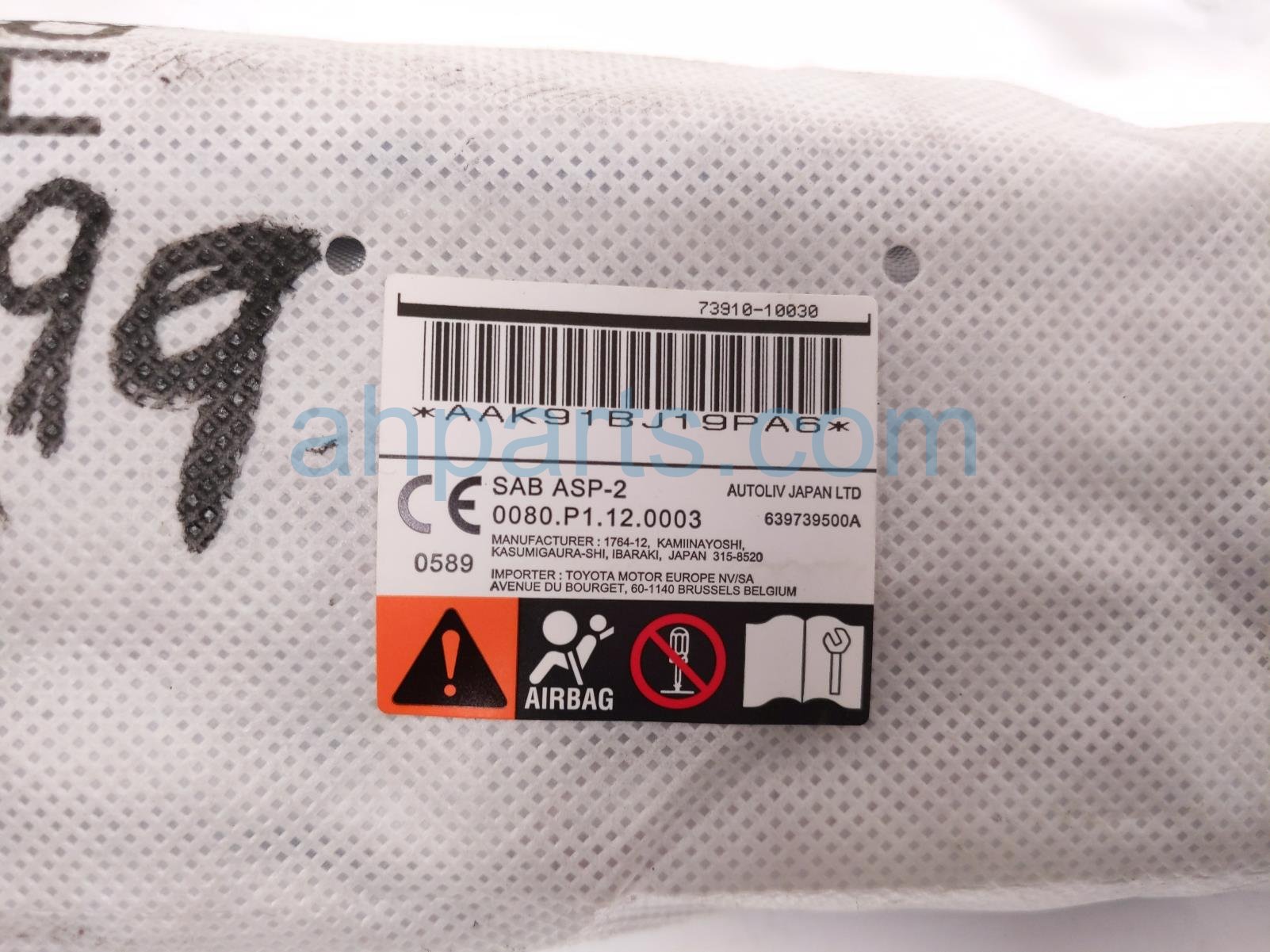2019 Toyota C-HR front passenger seat airbag is a used item with a 1 year warranty. This OEM replacement front passenger seat airbag is genuine and has part numbers 73910-10030, and 7391010030. This Toyota part sells for $125.
