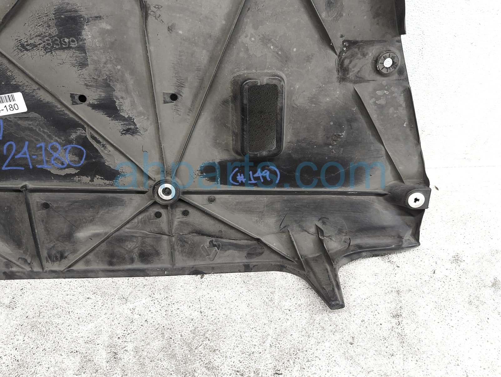 2019 Toyota Camry rear driver under body splash shield is a used item with a 1 year warranty. This OEM replacement rear driver under body splash shield is genuine and has part numbers 58399-06150, and 5839906150. This Toyota part sells for $40. This item has the following note: 'This item has scuffs - grade b.'