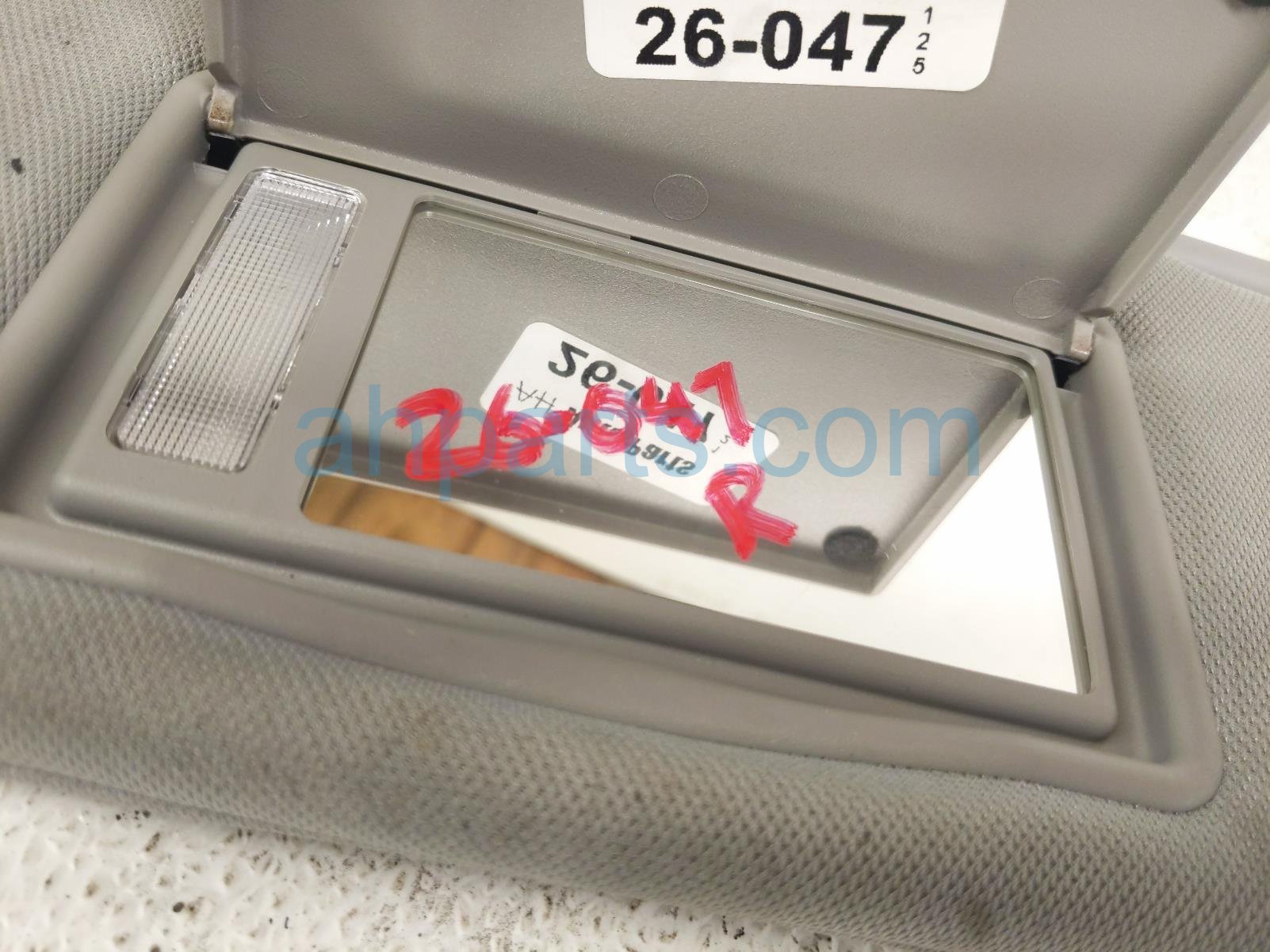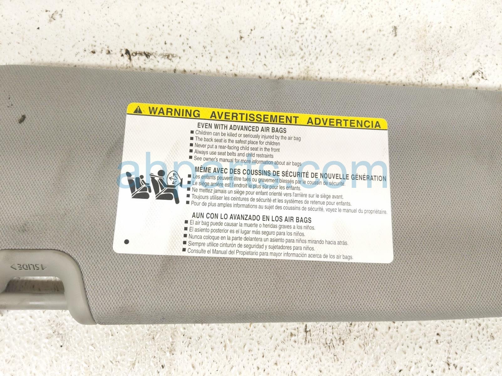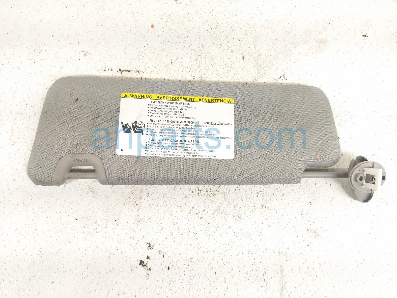 2019 Toyota Highlander passenger sun visor - grey is a used item with a 1 year warranty. This OEM replacement passenger sun visor - grey is genuine and has part numbers 74310-0E074-B0, and 743100E074B0. This Toyota part is for sale (please call for pricing). This item has the following note: 'This item has some minor scuffs andf some minor stains.'