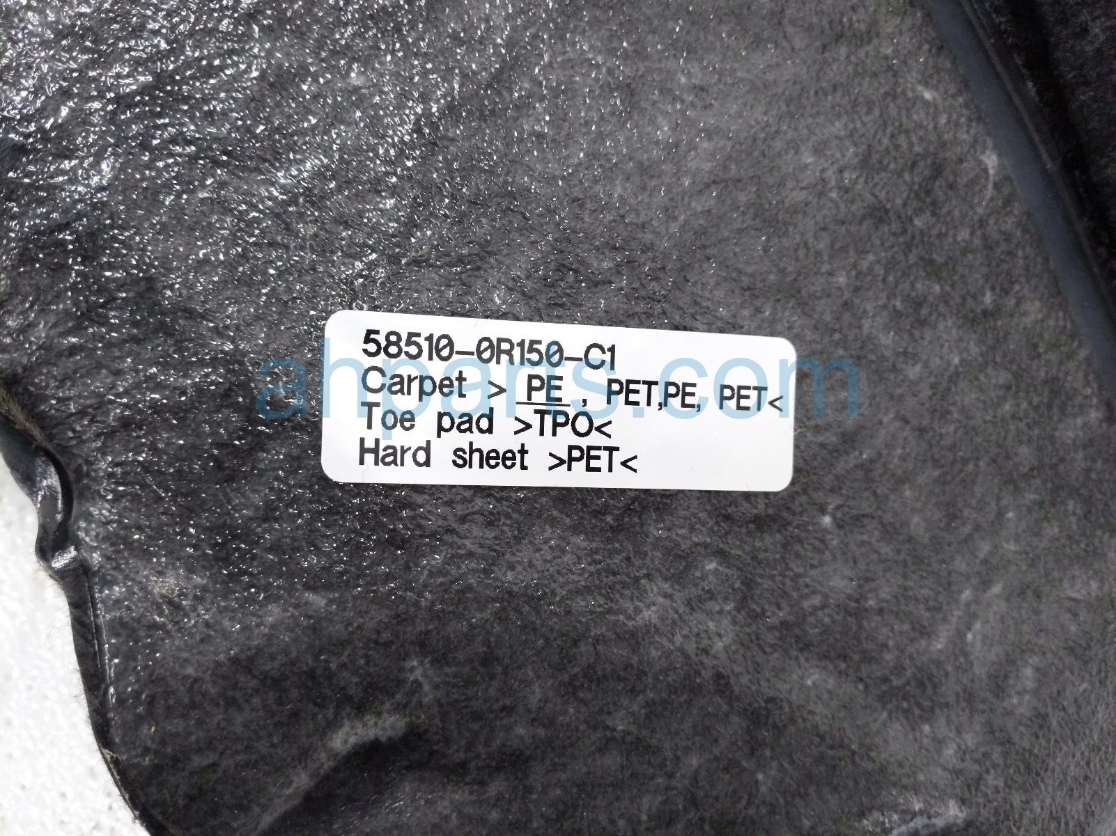 2019 Toyota RAV 4 front / ground interior floor carpet - grey is a used item with a 1 year warranty. This OEM replacement front / ground interior floor carpet - grey is genuine and has part numbers 58510-0R150-C1, and 585100R150C1. This Toyota part sells for $225.