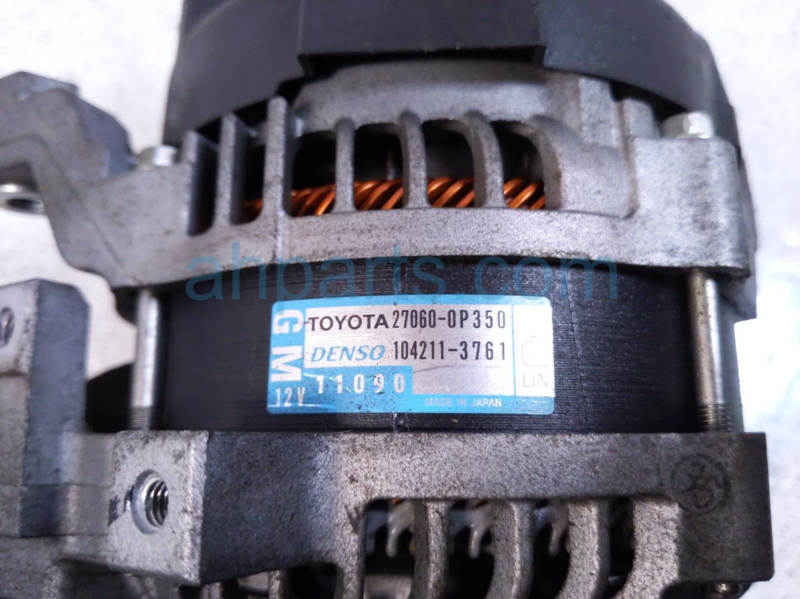 2019 Toyota Tacoma core alternator / generator - 55k mi is a used item with a 1 year warranty. This OEM replacement core alternator / generator - 55k mi is genuine and has part numbers 27060-0P350, and 270600P350. This Toyota part is for sale (please call for pricing).