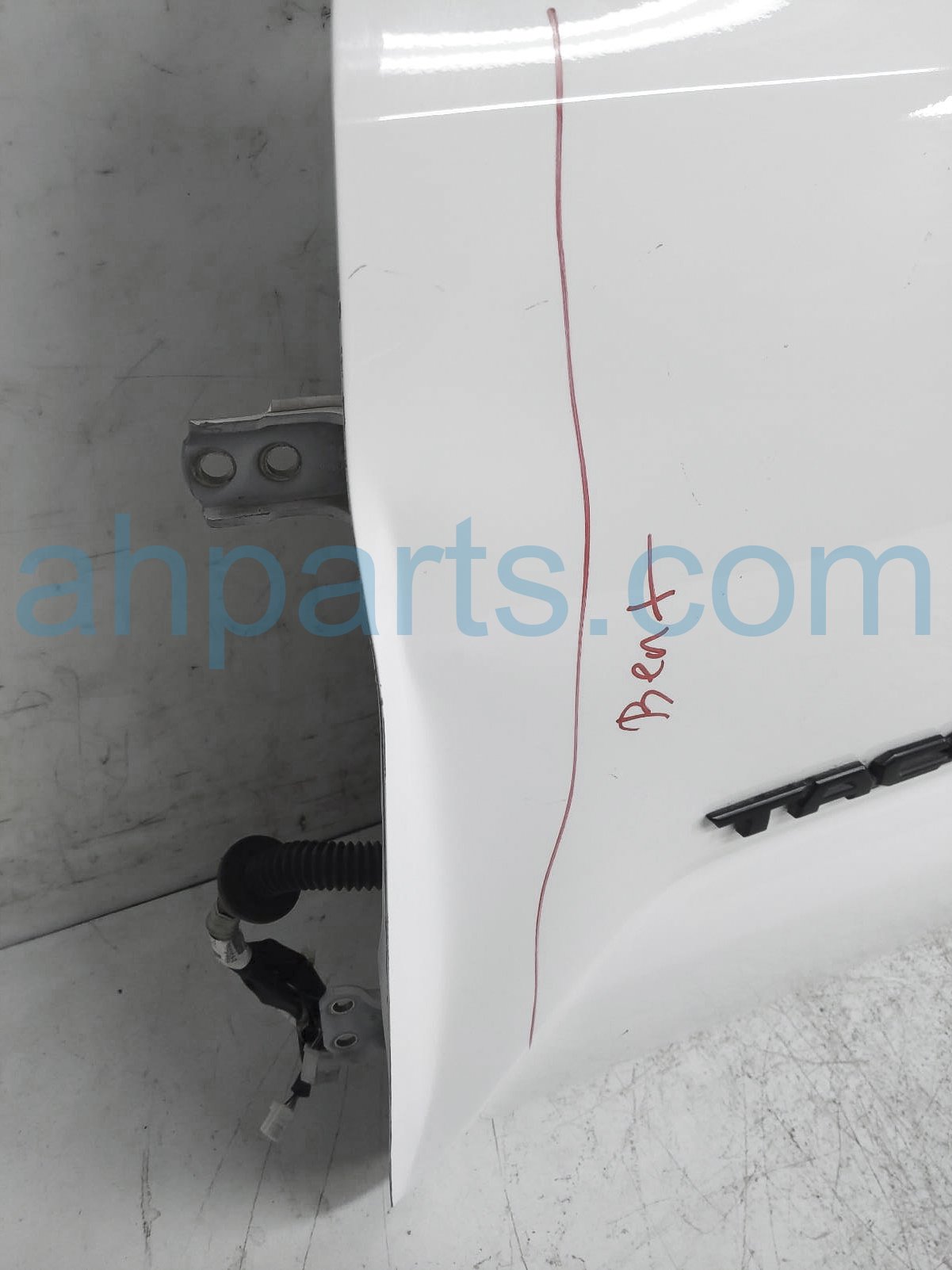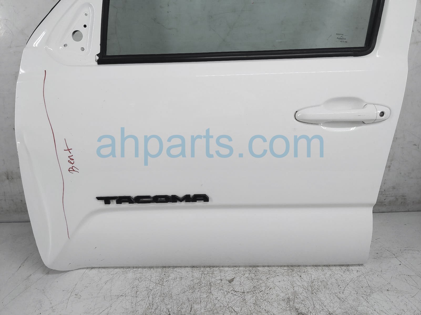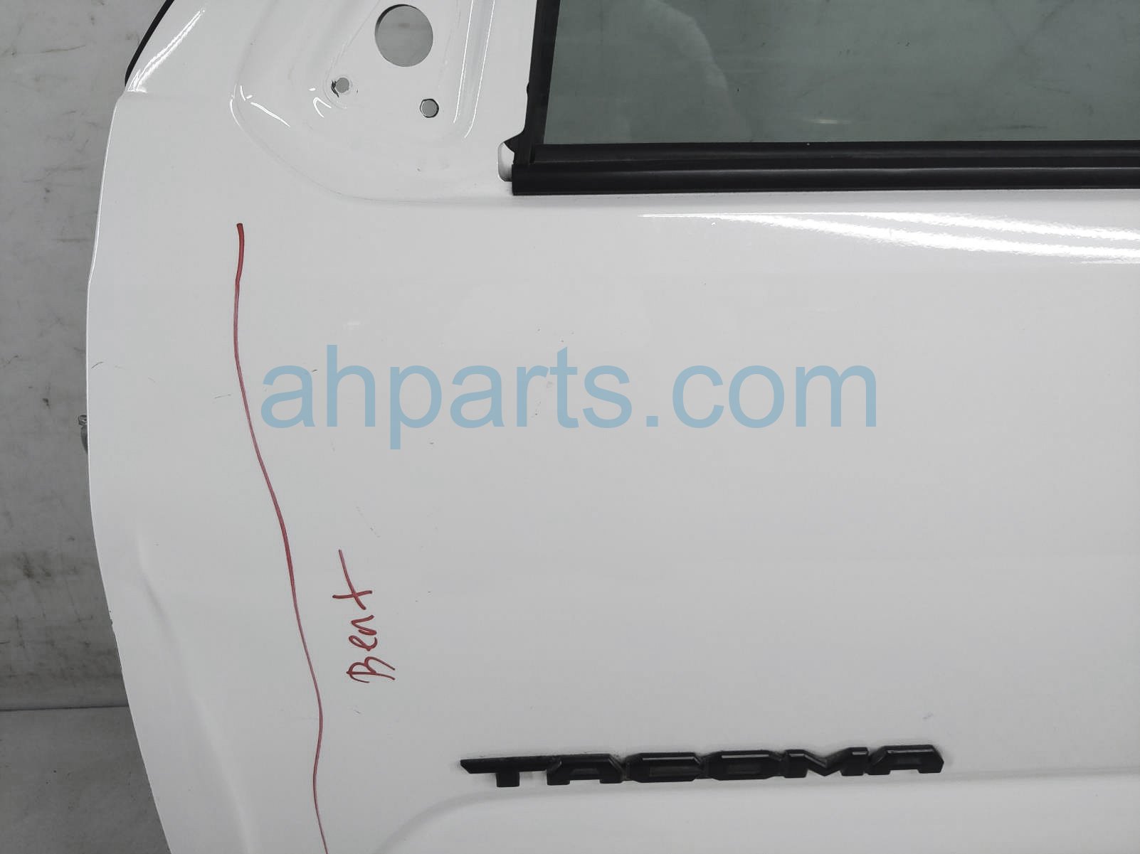 2019 Toyota Tacoma front driver door - white - no mirror/trim* is a used item with a 1 year warranty. This OEM replacement front driver door - white - no mirror/trim* is genuine and has part numbers 67002-04200, 6700204200, 68102-04121, and 6810204121. This Toyota part sells for $600. This item has the following note: 'This item is buckled at the edge - grade c.'
