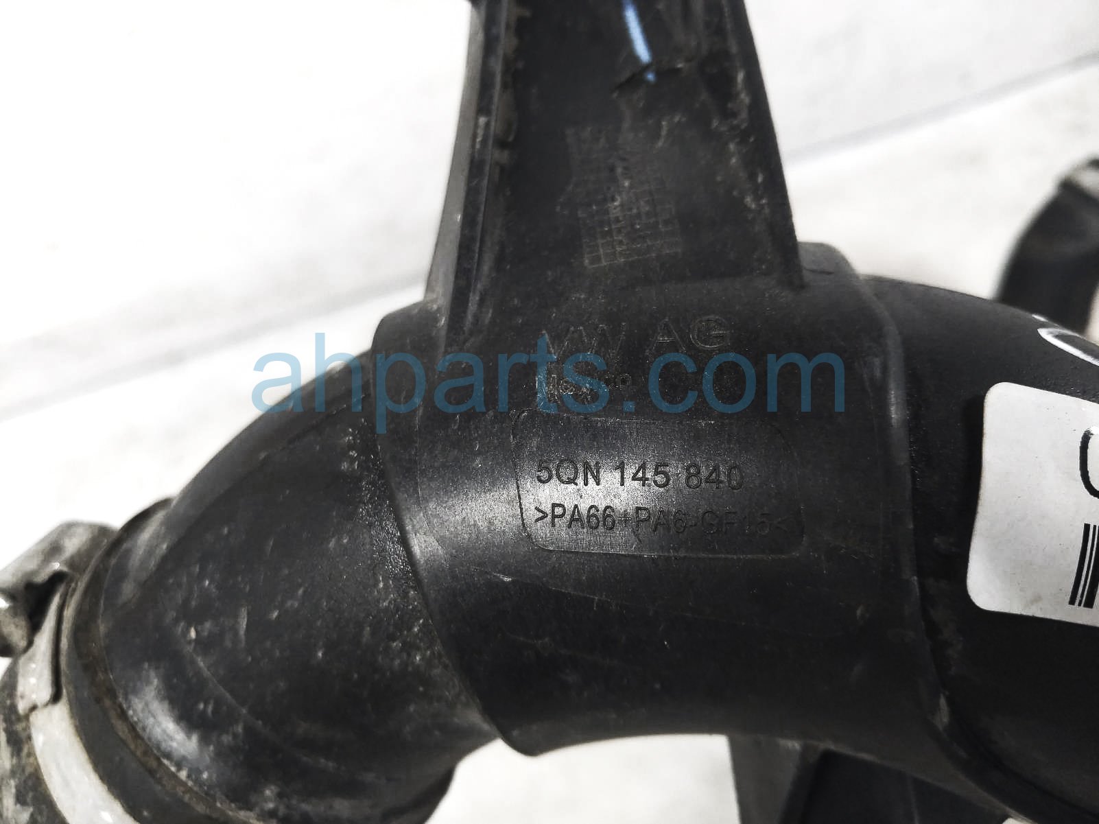 2019 Volkswagen Tiguan intercooler pressure hose - 2.0l is a used item with a 1 year warranty. This OEM replacement intercooler pressure hose - 2.0l is genuine and has part numbers 5QN-145-840, 5QN145840, 5Q0-145-840-B, and 5Q0145840B. This Volkswagen part sells for $80. This item has the following note: 'This item has a few cracks and a hole on one of the brackets - grade c.'