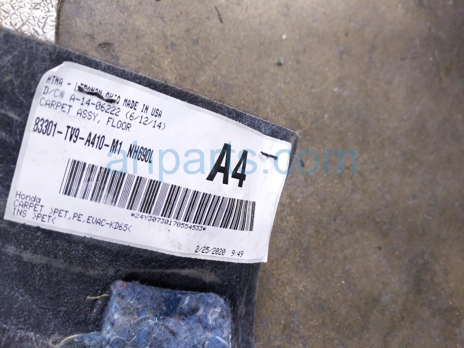 2020 Acura ILX front / ground interior floor carpet - black is a used item with a 1 year warranty. This OEM replacement front / ground interior floor carpet - black is genuine and has part numbers 83301-TV9-A41, and 83301TV9A41. This Acura part sells for $75.
