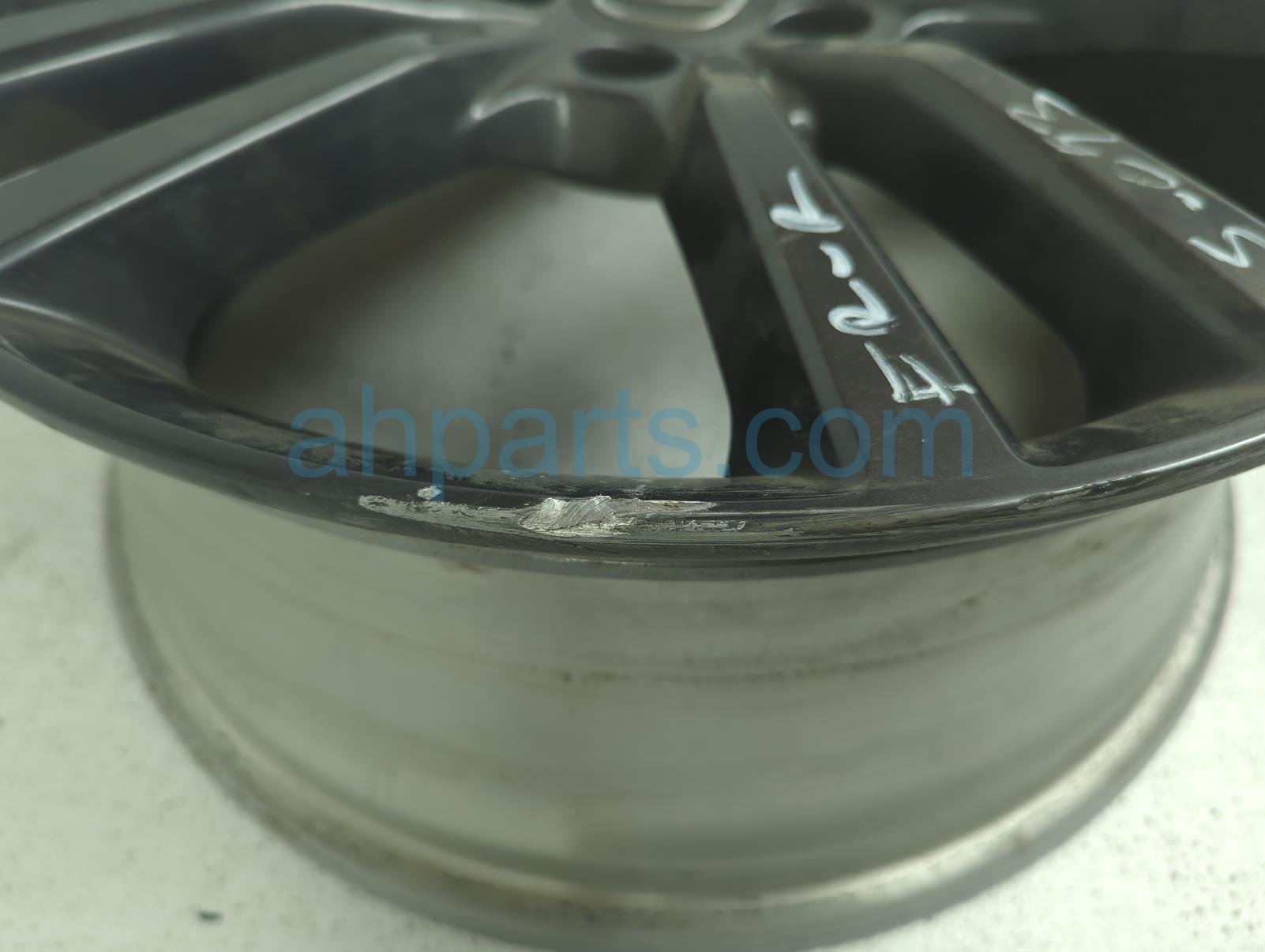 This item has the following note: 'Has curb rash & lip has some chips - grade c.'