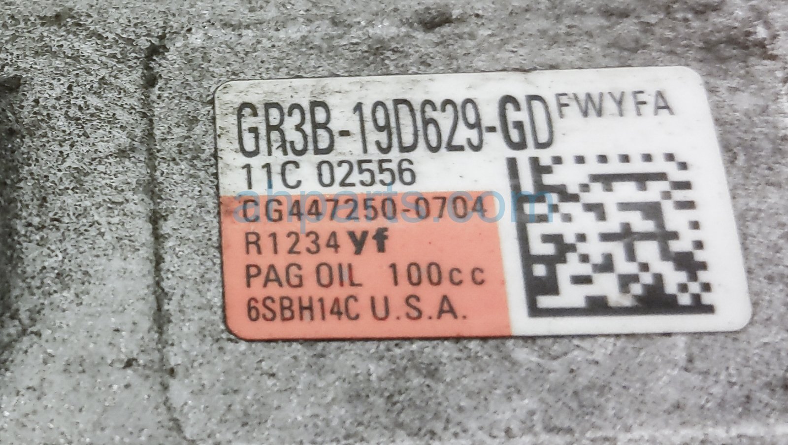 2020 Ford Mustang air + clutch ac pump / compressor is a used item with a 1 year warranty. This OEM replacement air + clutch ac pump / compressor is genuine and has part numbers GR3Z-19703-C, GR3Z19703C, GR3B-19D629-GD, and GR3B19D629GD. This Ford part sells for $99. This item has the following note: 'Has a small crack.'