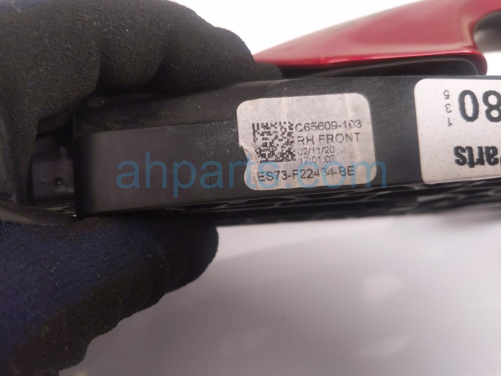 2020 Ford Mustang outside/exterior front passenger exterior door handle - red is a used item with a 1 year warranty. This OEM replacement outside/exterior front passenger exterior door handle - red is genuine and has part numbers EM2B-R224N02-BC, EM2BR224N02BC, ES73-F22464-BE, and ES73F22464BE. This Ford part is for sale (please call for pricing).