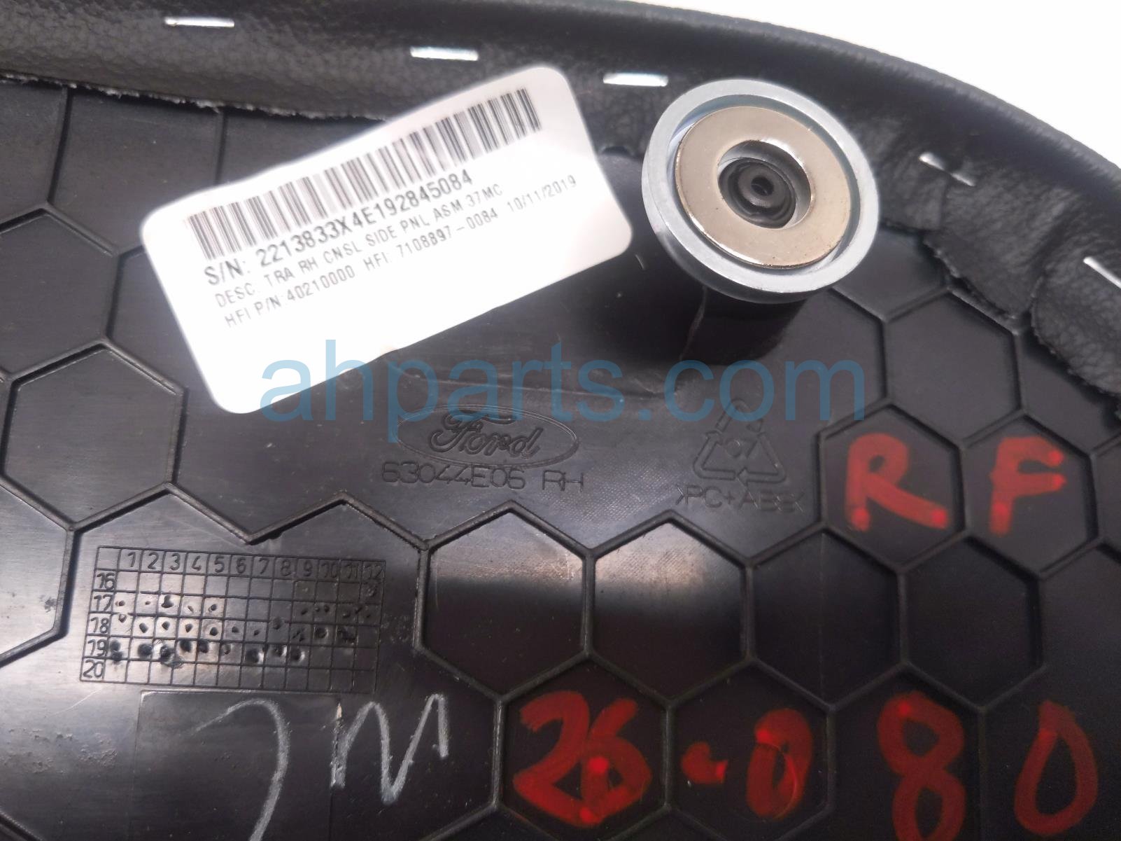 2020 Ford Mustang passenger console side trim panel - blk is a used item with a 1 year warranty. This OEM replacement passenger console side trim panel - blk is genuine and has part numbers FR3Z-6304608-AC, FR3Z6304608AC, and 63044E06. This Ford part is for sale (please call for pricing).