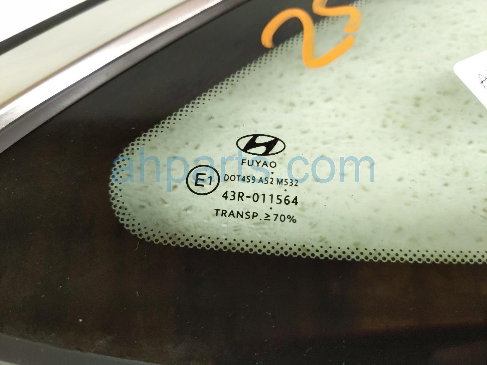 2020 Hyundai Sonata passenger quarter window glass is a used item with a 1 year warranty. This OEM replacement passenger quarter window glass is genuine and has part numbers 87820-L0000, and 87820L0000. This Hyundai part is for sale (please call for pricing).