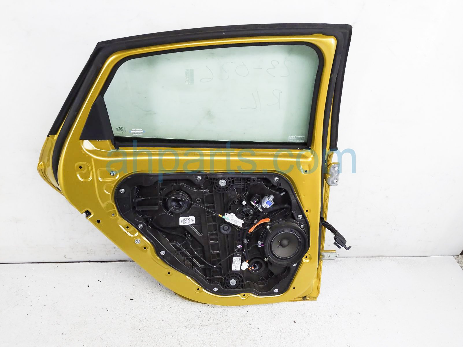 2020 Hyundai Sonata rear driver door - gold - no inside trim is a used item with a 1 year warranty. This OEM replacement rear driver door - gold - no inside trim is genuine and has part numbers 77003-L0000, and 77003L0000. This Hyundai part sells for $999. This item has the following note: 'Has a small scuff on door handle.'