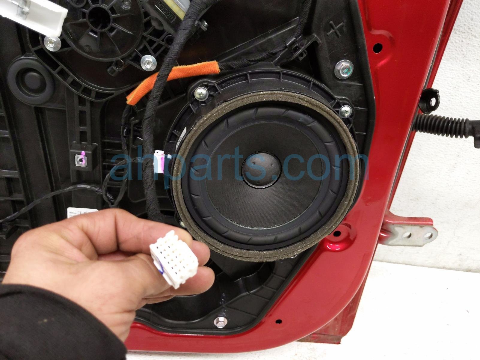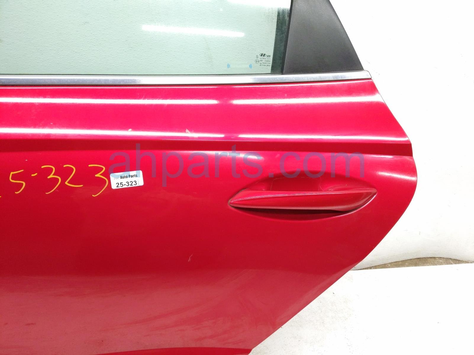 2020 Hyundai Sonata rear driver door - red - no inside trim is a used item with a 1 year warranty. This OEM replacement rear driver door - red - no inside trim is genuine and has part numbers 77003-L0000, 77003L0000, 83411-L1010, 83411L1010, 83471-L0000, and 83471L0000. This Hyundai part sells for $795. This item has the following note: 'This item has a few minor paint chips.'