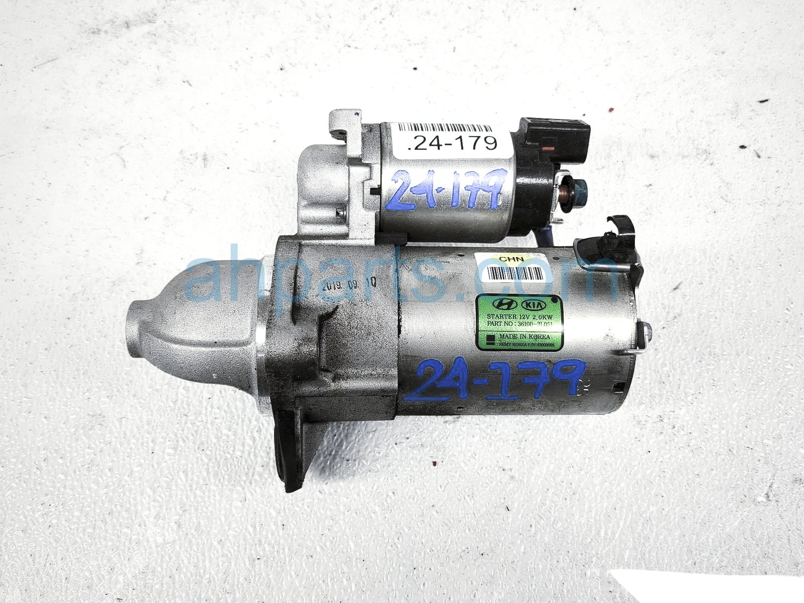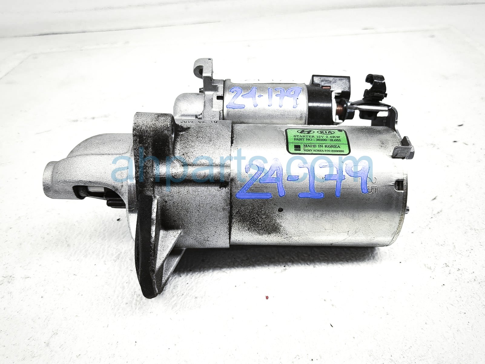 2020 Kia Stinger starter motor is a used item with a 1 year warranty. This OEM replacement starter motor is genuine and has part numbers 36100-3L051, and 361003L051. This Kia part sells for $149.