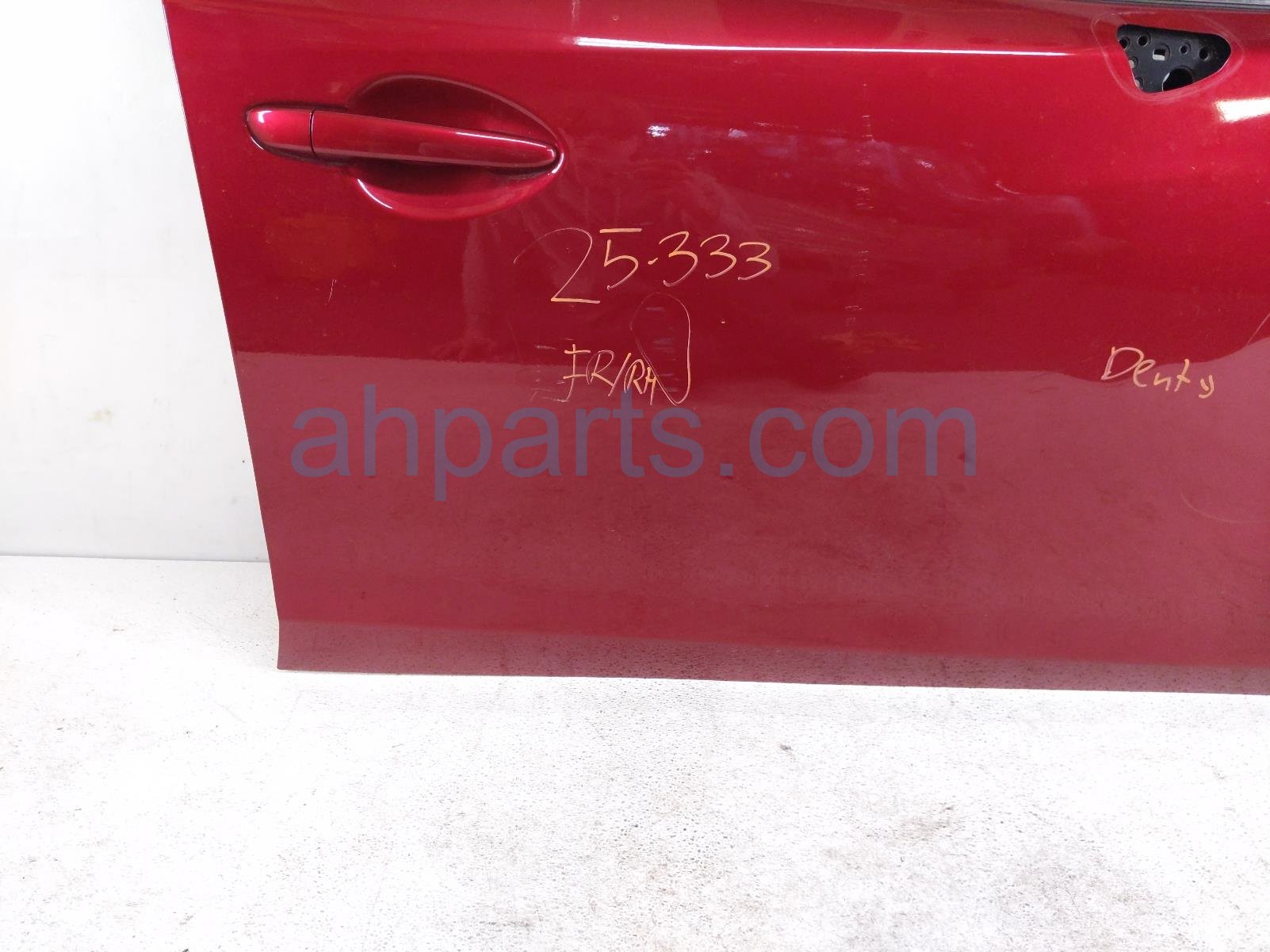 2020 Mazda 6 front passenger door - red - no mirror/trim* is a used item with a 1 year warranty. This OEM replacement front passenger door - red - no mirror/trim* is genuine and has part numbers GHY0-58-02XJ, GHY05802XJ, GBFN-58-97X, GBFN5897X, GJR9-58-310B, GJR958310B, D651-58-58XB, D6515858XB, GHP9-58-590A, GHP958590A, GRT7-58-510, and GRT758510. This Mazda part is for sale (please call for pricing). This item has the following note: '*has a dent and some scuffs this item has a dent near the front and some scuffs/scratches on the paint.'