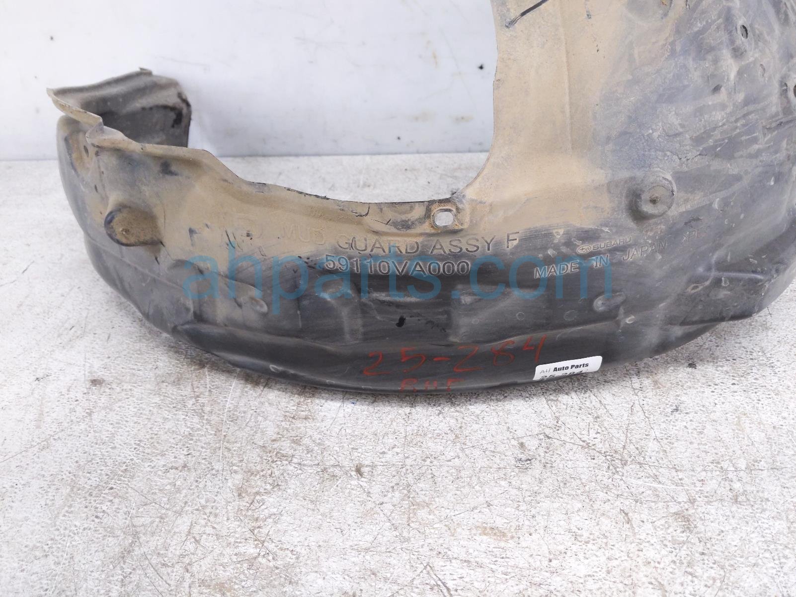 2020 Subaru WRX front passenger inner fender liner is a used item with a 1 year warranty. This OEM replacement front passenger inner fender liner is genuine and has part numbers 59110VA000. This Subaru part sells for $25. This item has the following note: 'This item has a torn plastic area.'