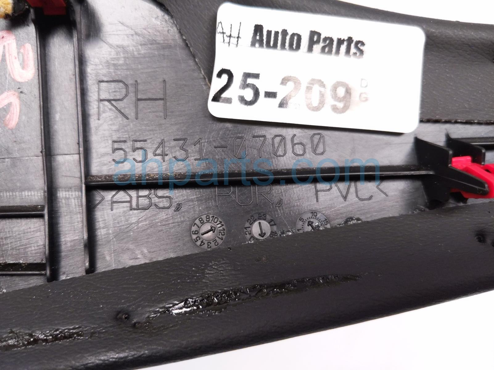 2020 Toyota Avalon passenger console trim garnish is a used item with a 1 year warranty. This OEM replacement passenger console trim garnish is genuine and has part numbers 55431-07060-C0, 5543107060C0, 55431-07061-C0, and 5543107061C0. This Toyota part sells for $25. This item has the following note: 'Grade a.'