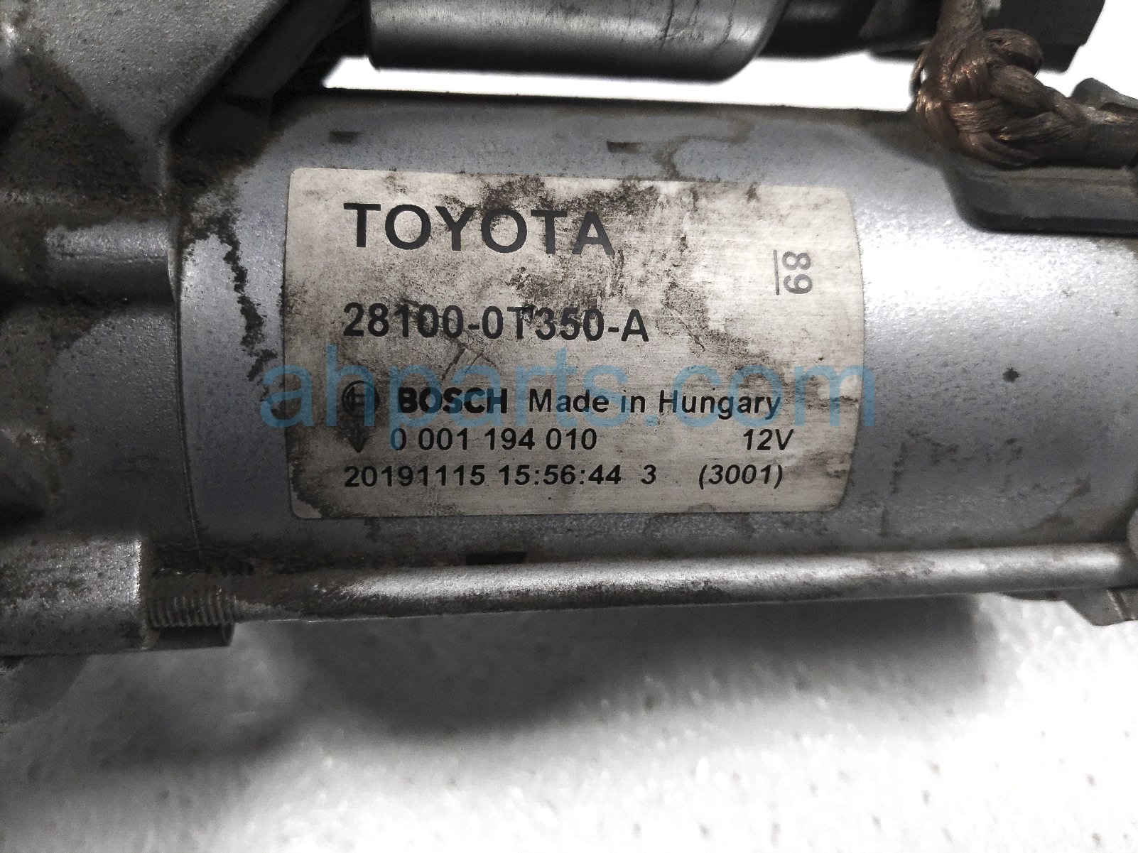 2020 Toyota C-HR starter motor is a used item with a 1 year warranty. This OEM replacement starter motor is genuine and has part numbers 28100-0T350, and 281000T350. This Toyota part sells for $125.