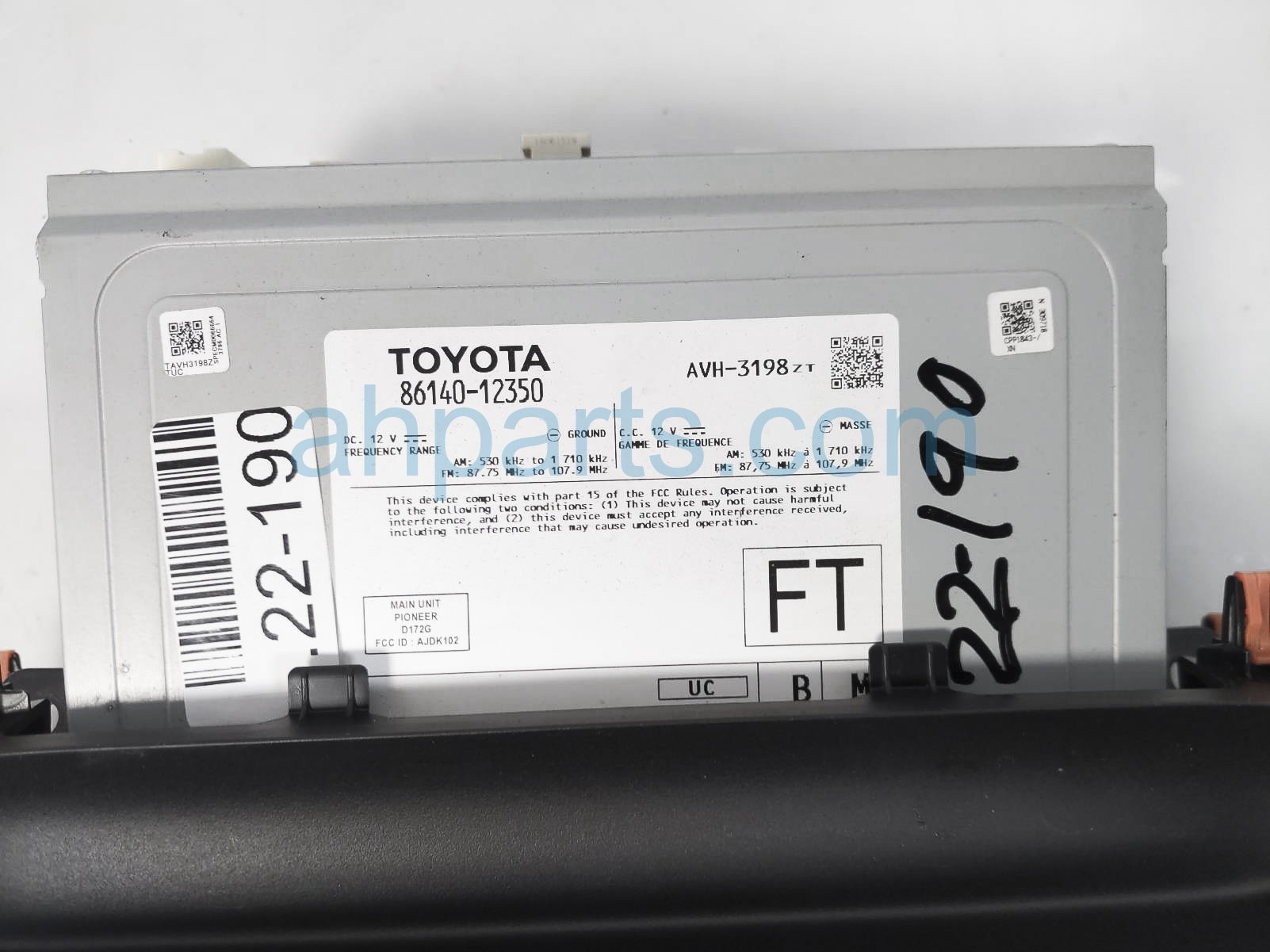 2020 Toyota Corolla radio & screen display assembly is a used item with a 1 year warranty. This OEM replacement radio & screen display assembly is genuine and has part numbers 86140-02A50, 8614002A50, 86140-12350, and 8614012350. This Toyota part sells for $199. This item has the following note: 'Has minor scratches around power/volume button.'