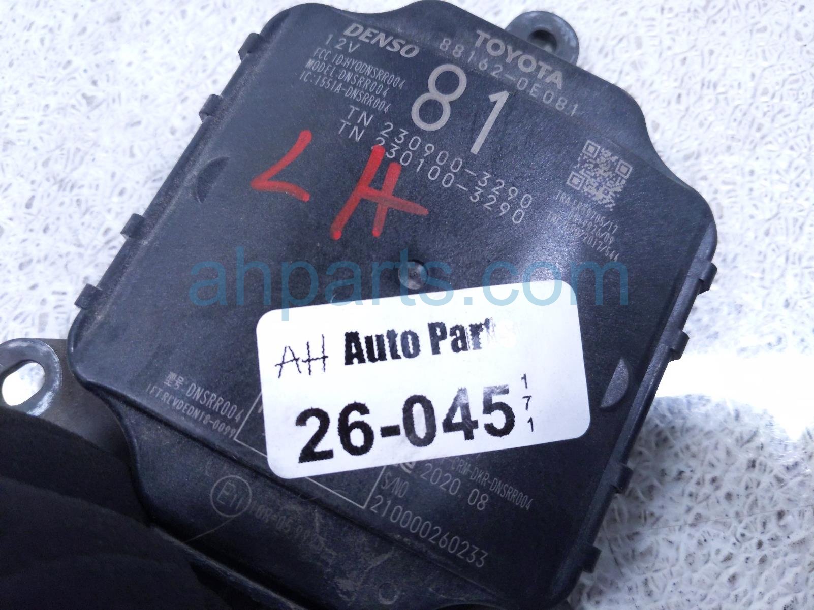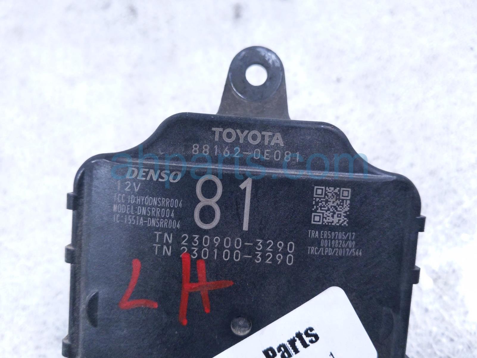 2020 Toyota Highlander rear driver blind spot radar unit is a used item with a 1 year warranty. This OEM replacement rear driver blind spot radar unit is genuine and has part numbers 88162-0E081, and 881620E081. This Toyota part is for sale (please call for pricing).